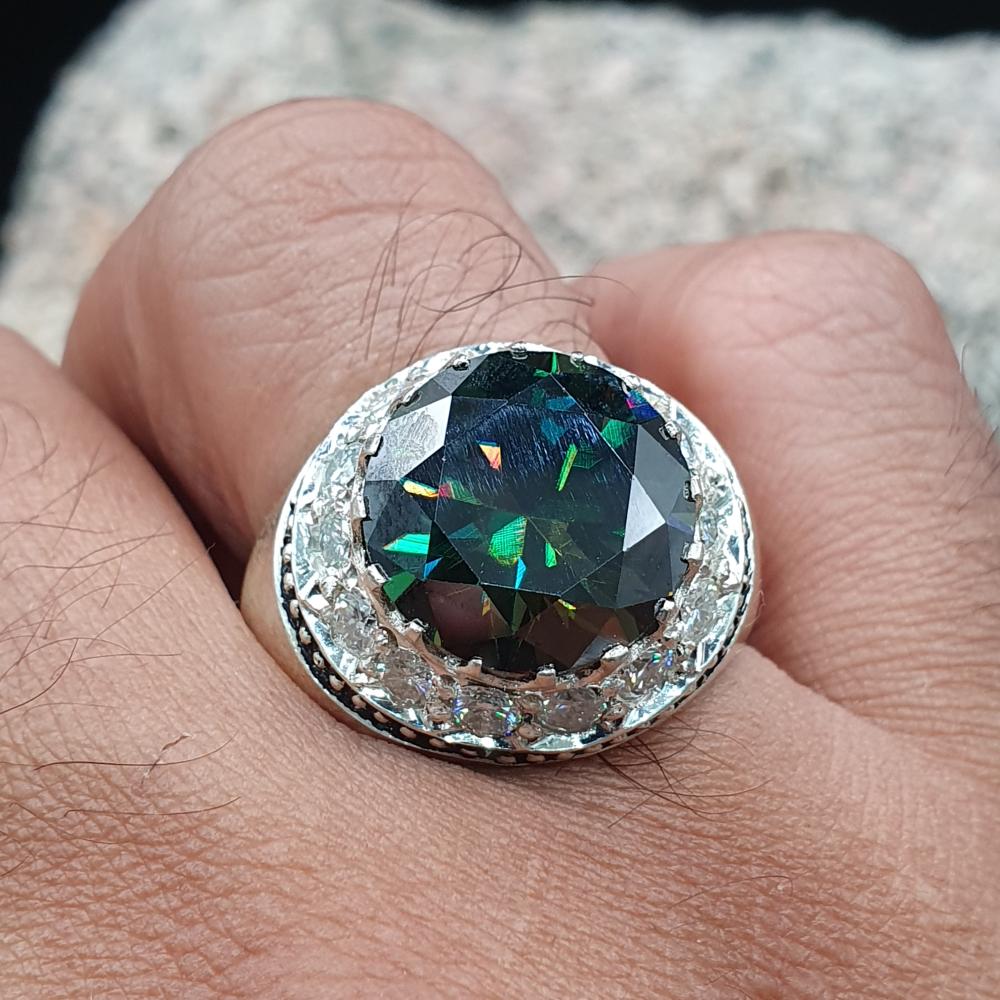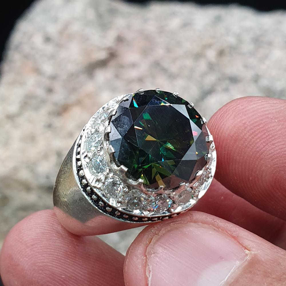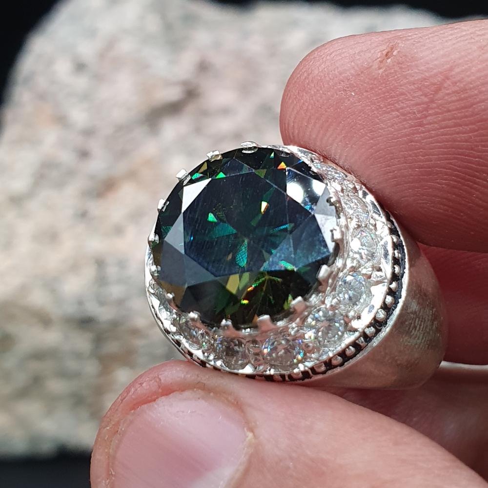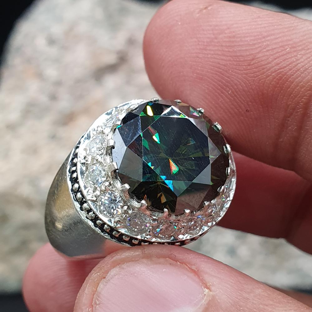 خاتم موزنايت دائري مرصع بالموزنايت موديل المرايه