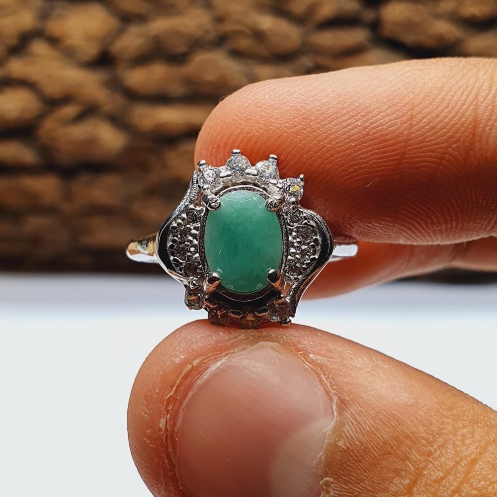 خاتم زمرد افريفي تفاحي مرصع بالزركون