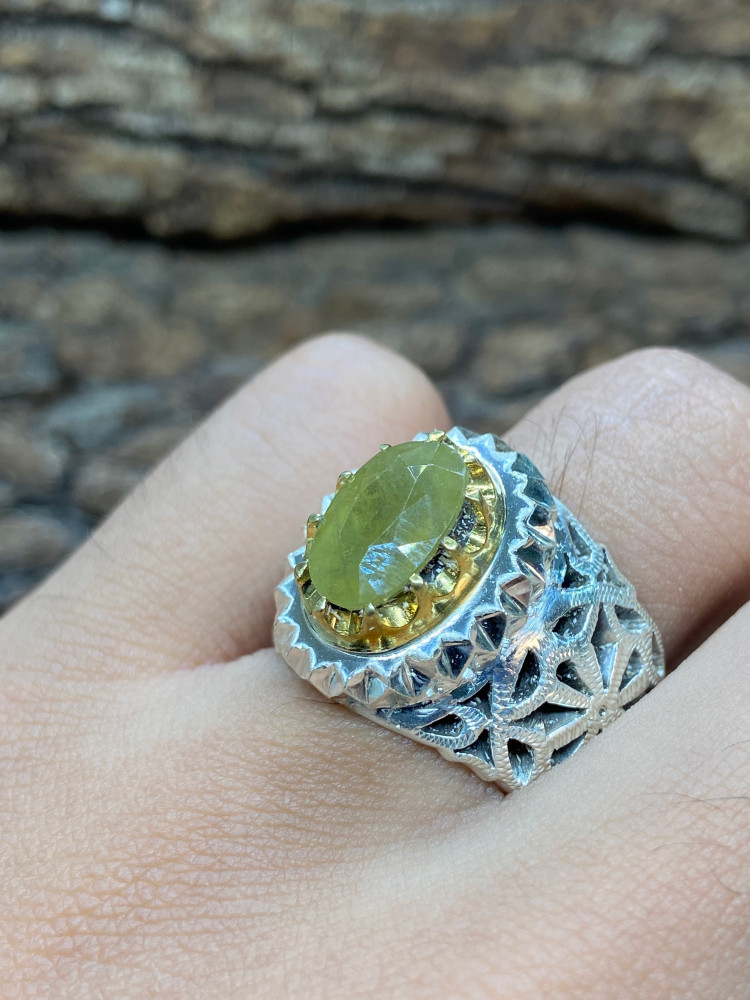 حجر الزبرجد برواز ذهبي صياغه ثقيله صياغه عباسي
