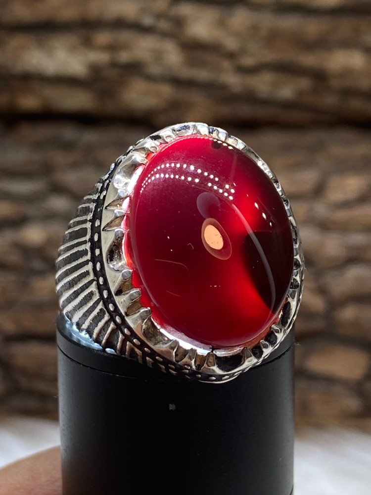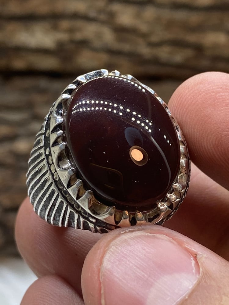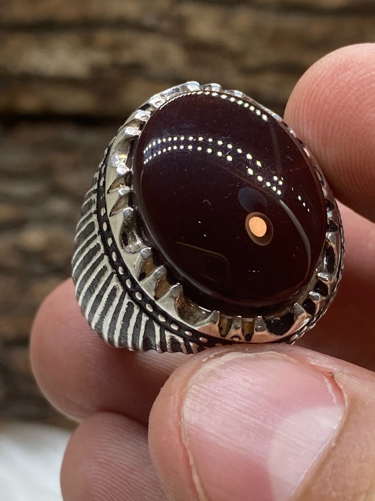 حجر عقيق يماني كبدي صياغه ابداعيه منتهي الجمال
