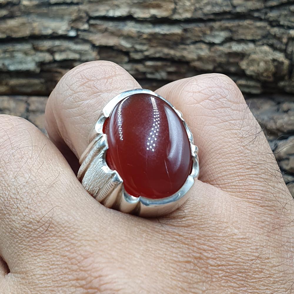 خاتم عقيق كرزي صياغه عارف الثقيله الفاخره
