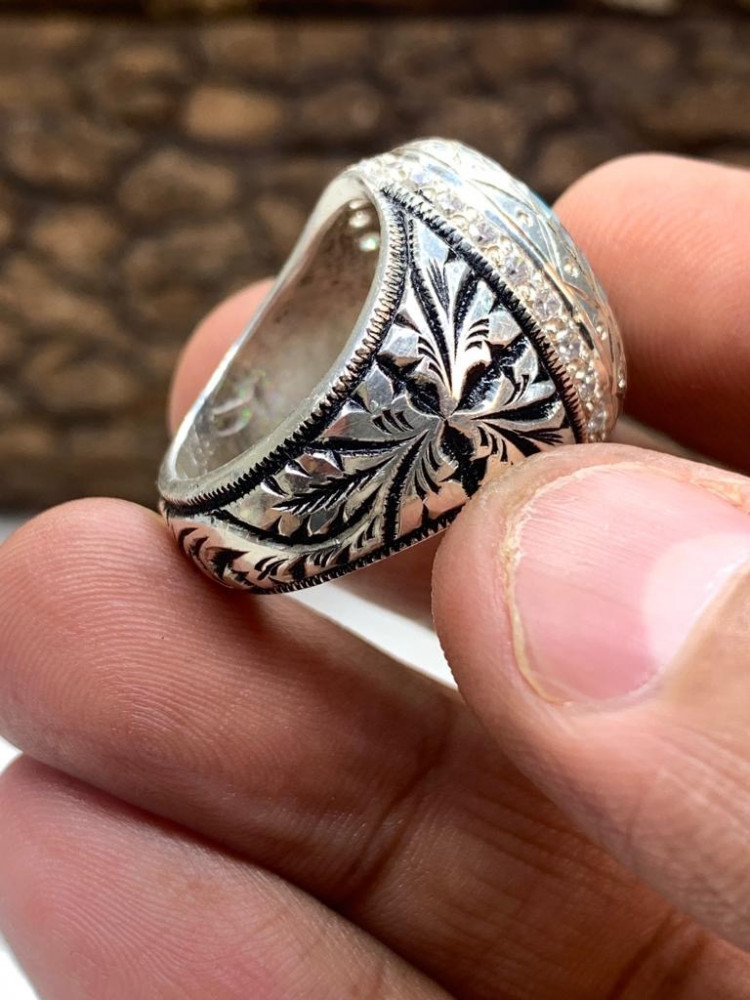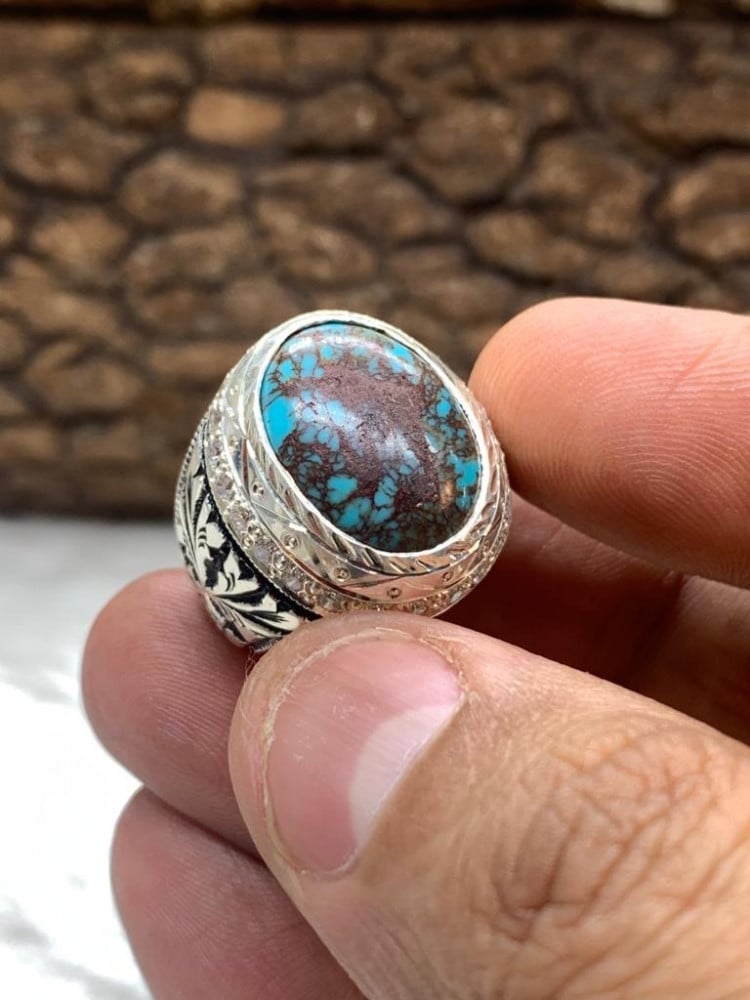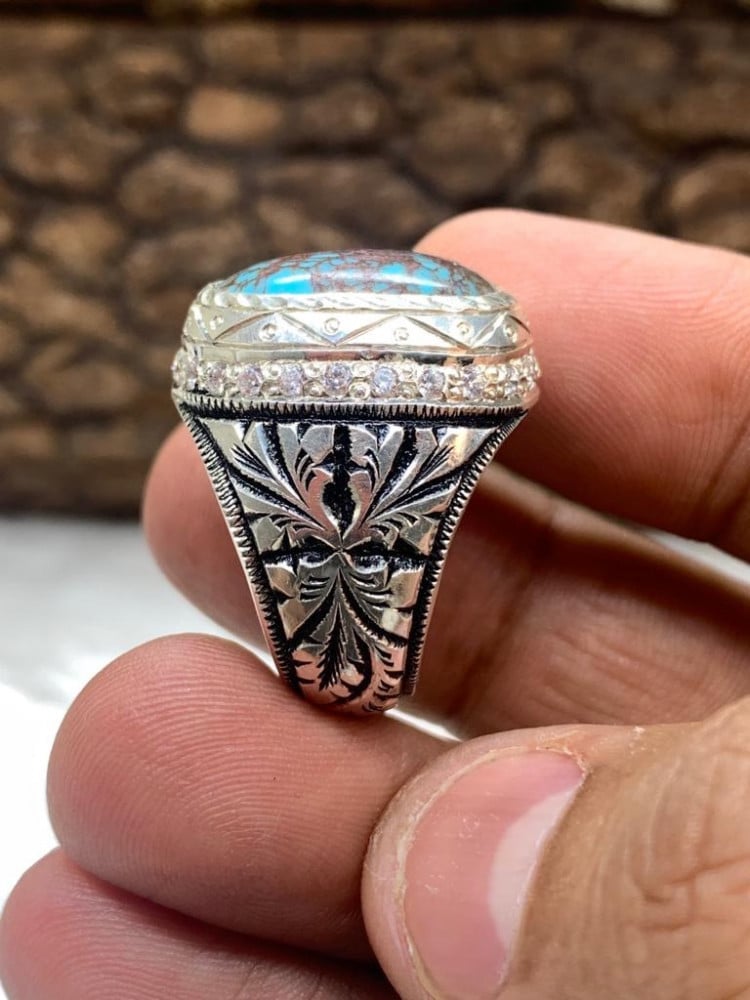 حجر فيروز عنكبوتي مرصع بالزركون السويسري صياغه بوتاش كامل