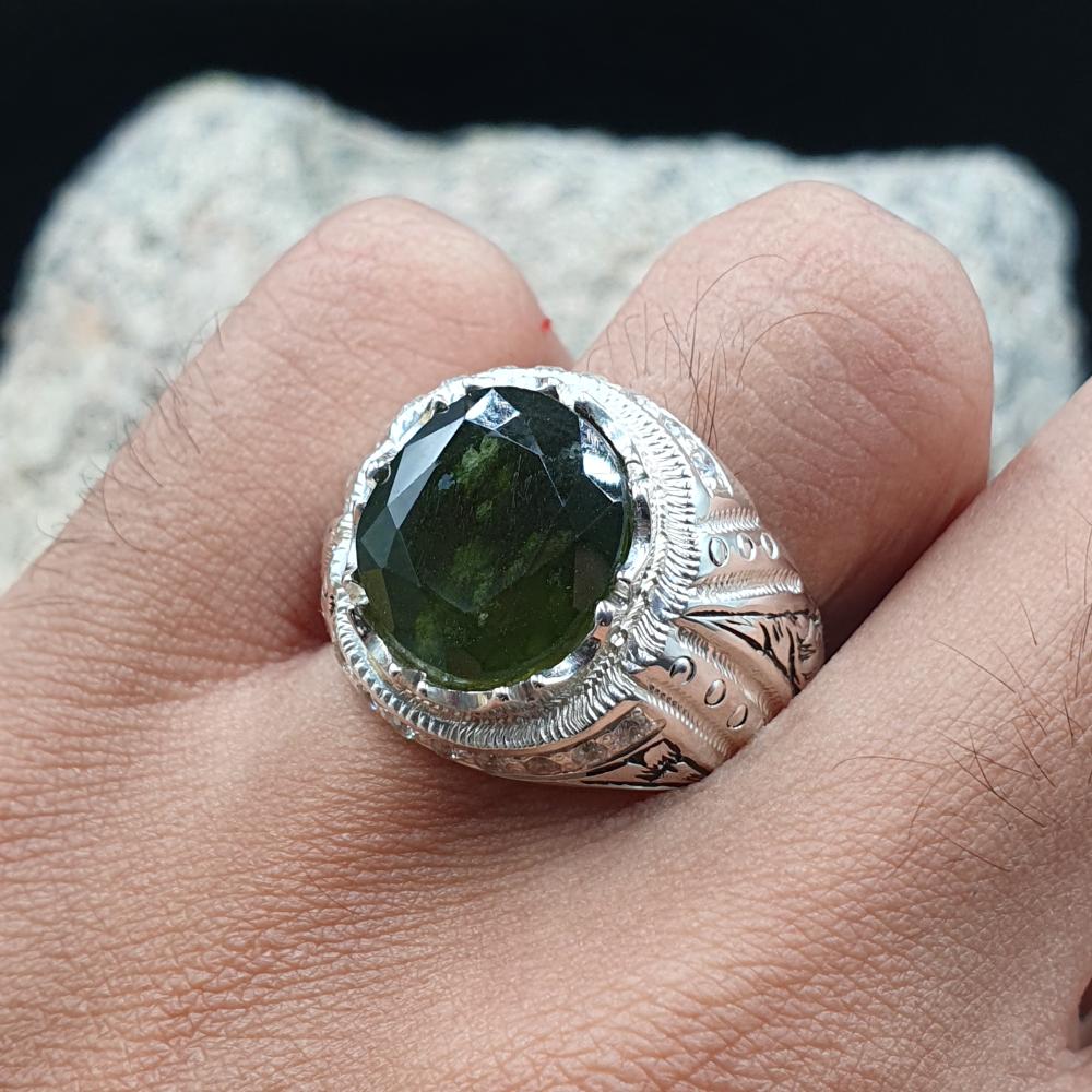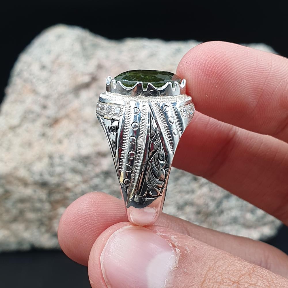 خاتم زبرجد طبيعي مرصع بالزركون موديل برتاش الشريف