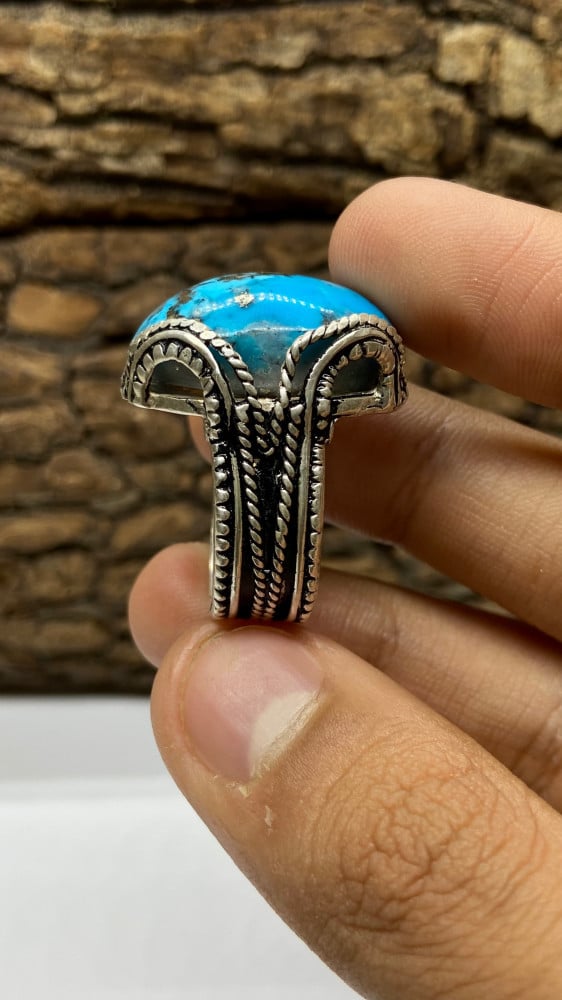 حجر فيروز كرماني مفضض صياغه سلك نجراني مقاس 9 امريكي