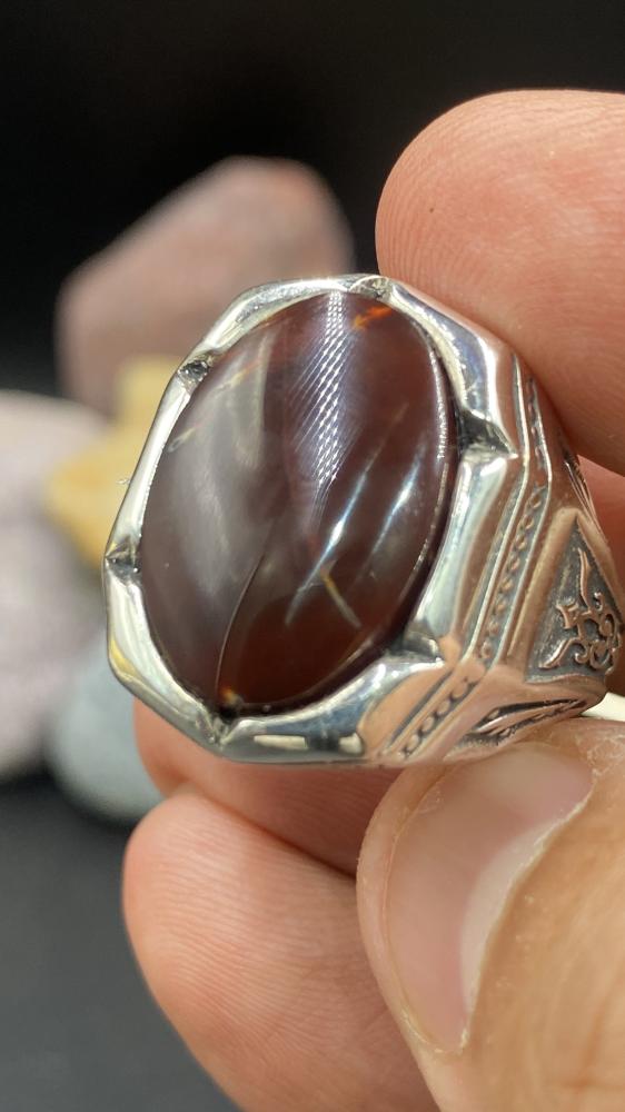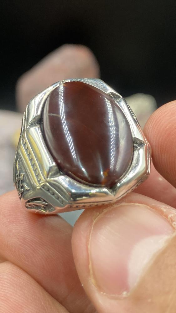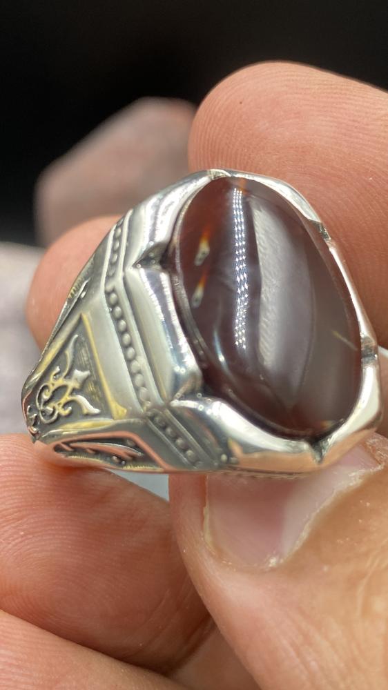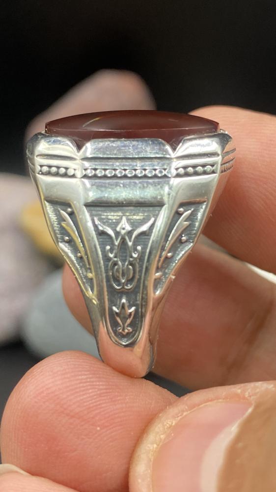 خاتم عقيق كرزي مزفر صياغه حمزه