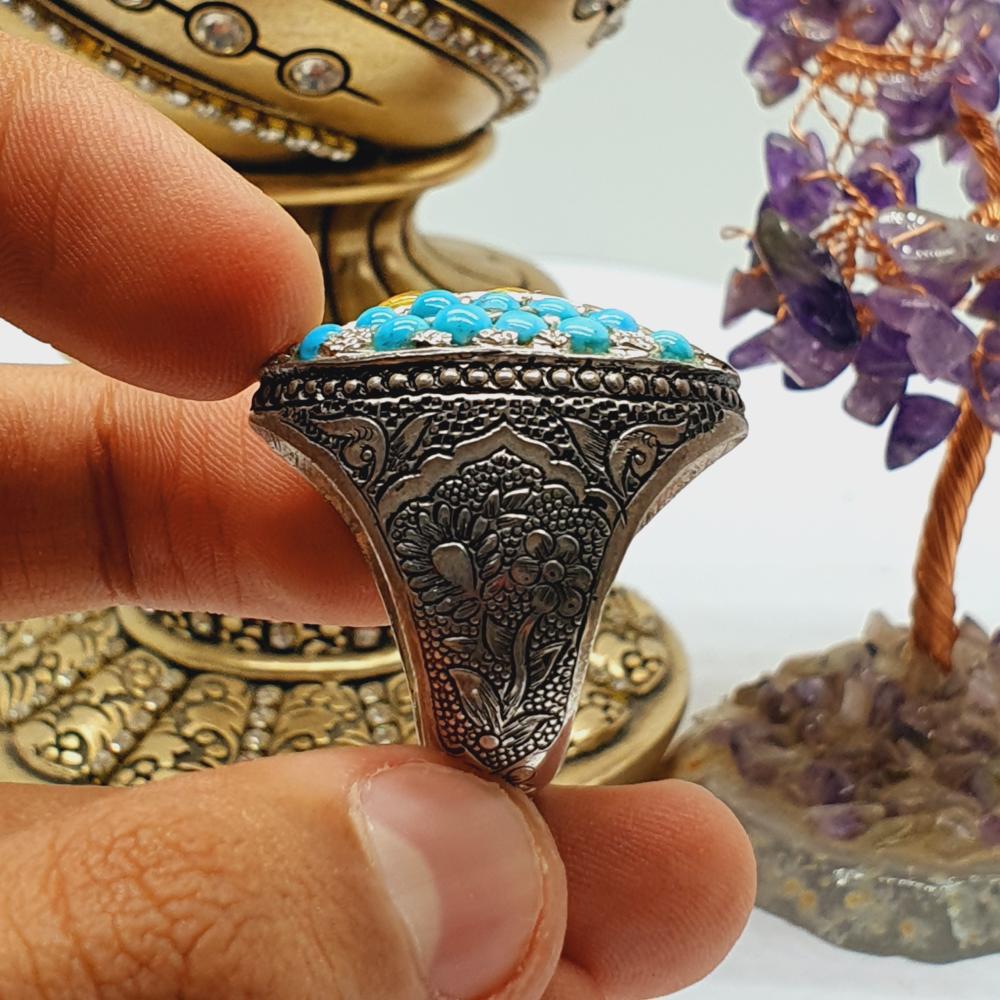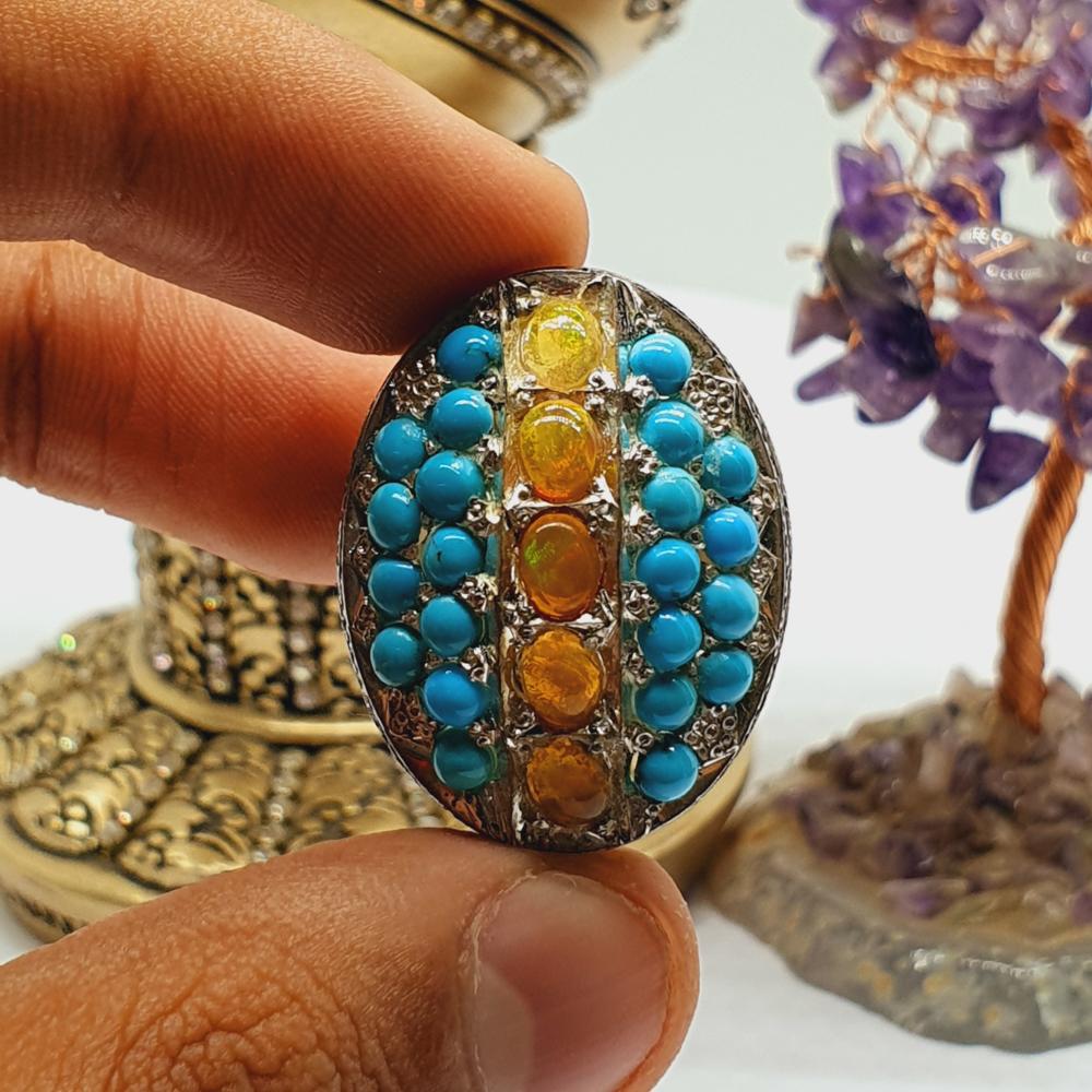 خاتم اوبال اثيوبي مرصع بالفيروز الصافي موديل برتاش كامل