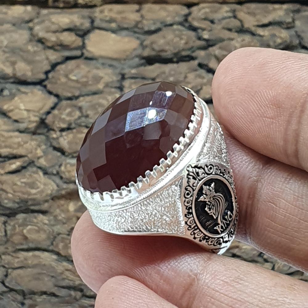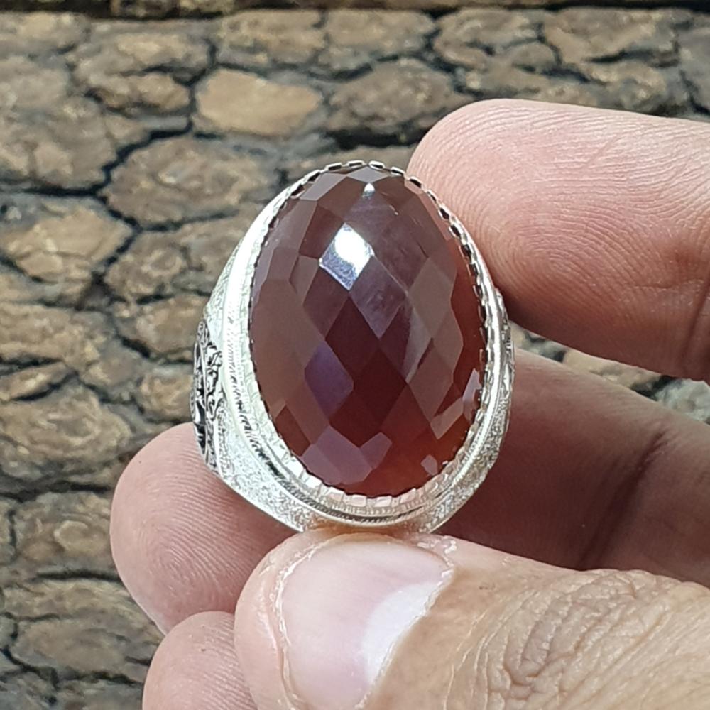 خاتم عقيق خرساني بيضاوي قص كرستالي صياغه الكنج الخاصه ابداع الشريف