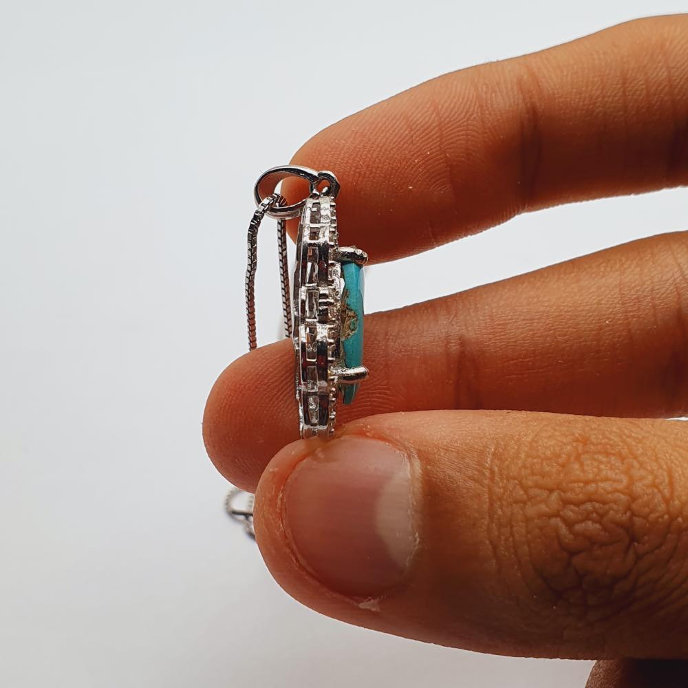 تعليقه حجر الفيروز الطبيعي مرصع بالزركون السويسري مع سلسة فضة عيار 925 تصميم انيق
