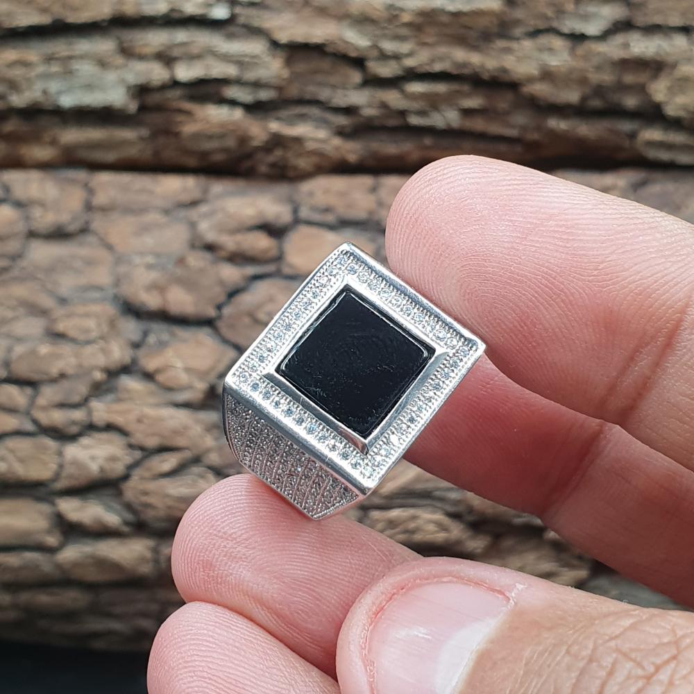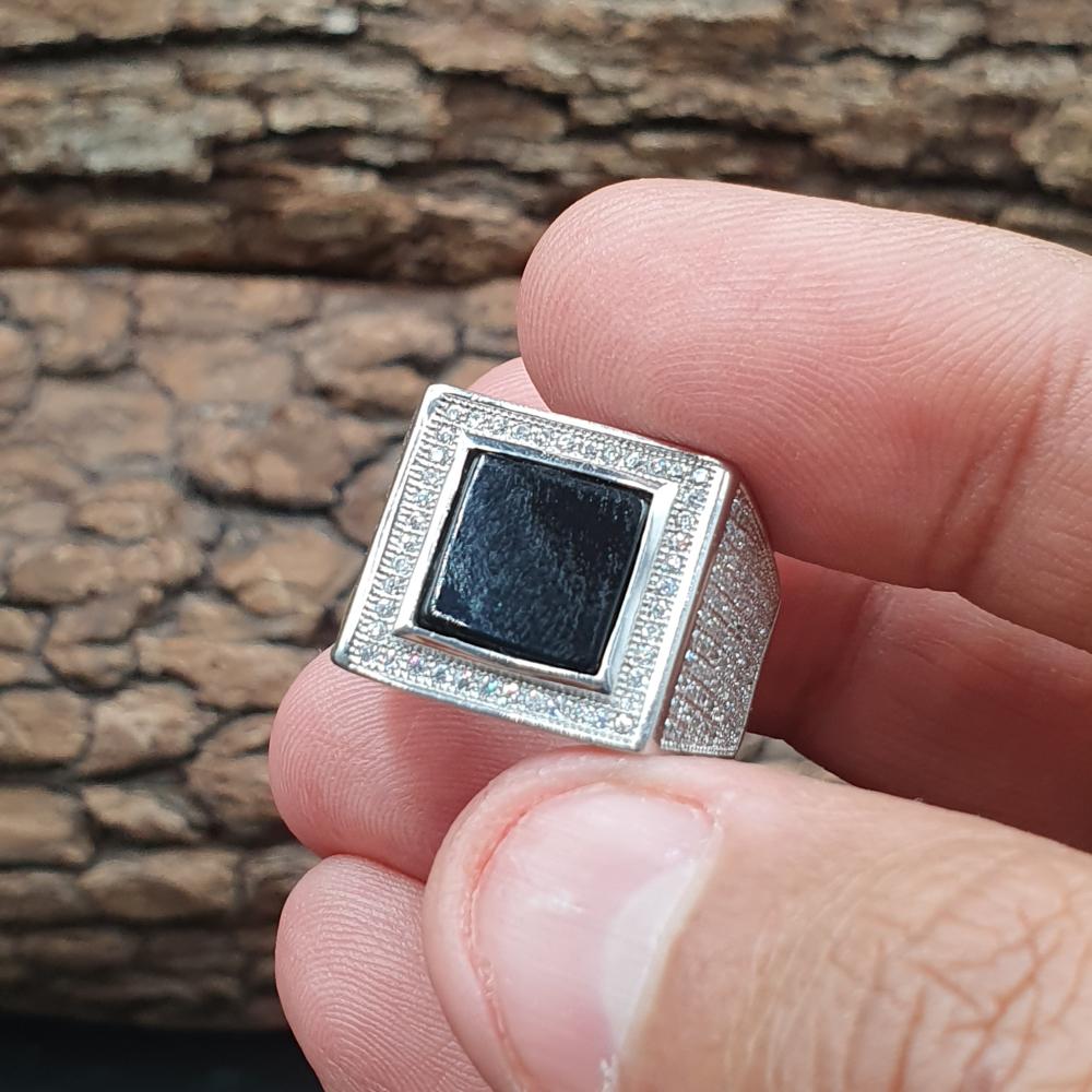 خاتم فضه كرستالي اسود موديل ايطالي مرصع بالزركون