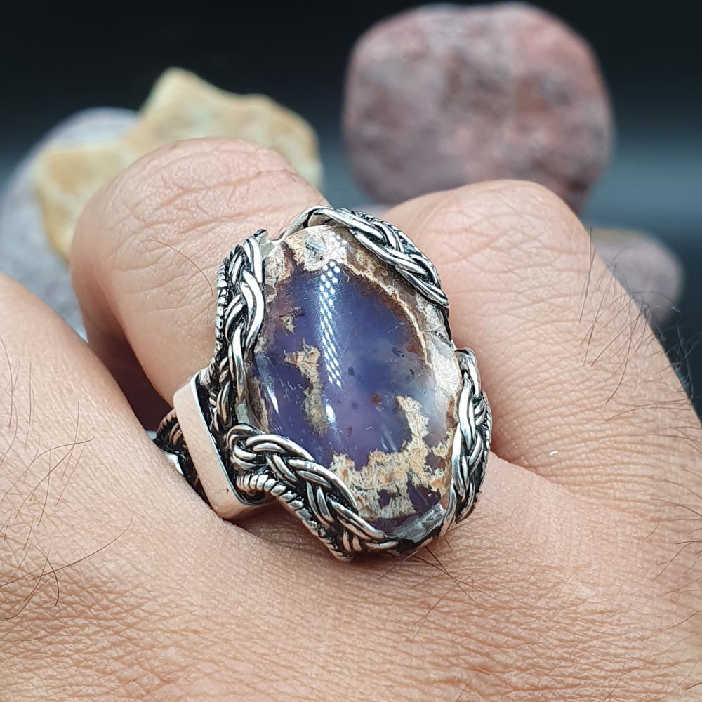 خاتم عقيق يماني طحلبي بنفسجي صياغه سلك نجراني