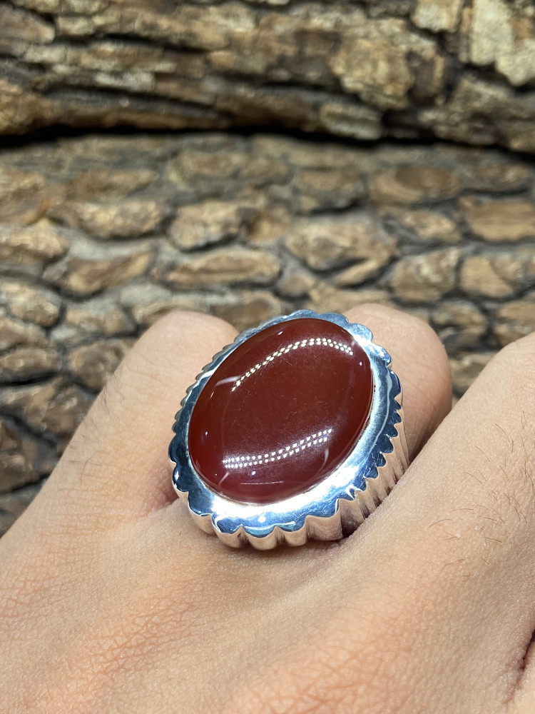 حجر عقيق يماني كرزي عيار 999 صياغه عارف الثقيله