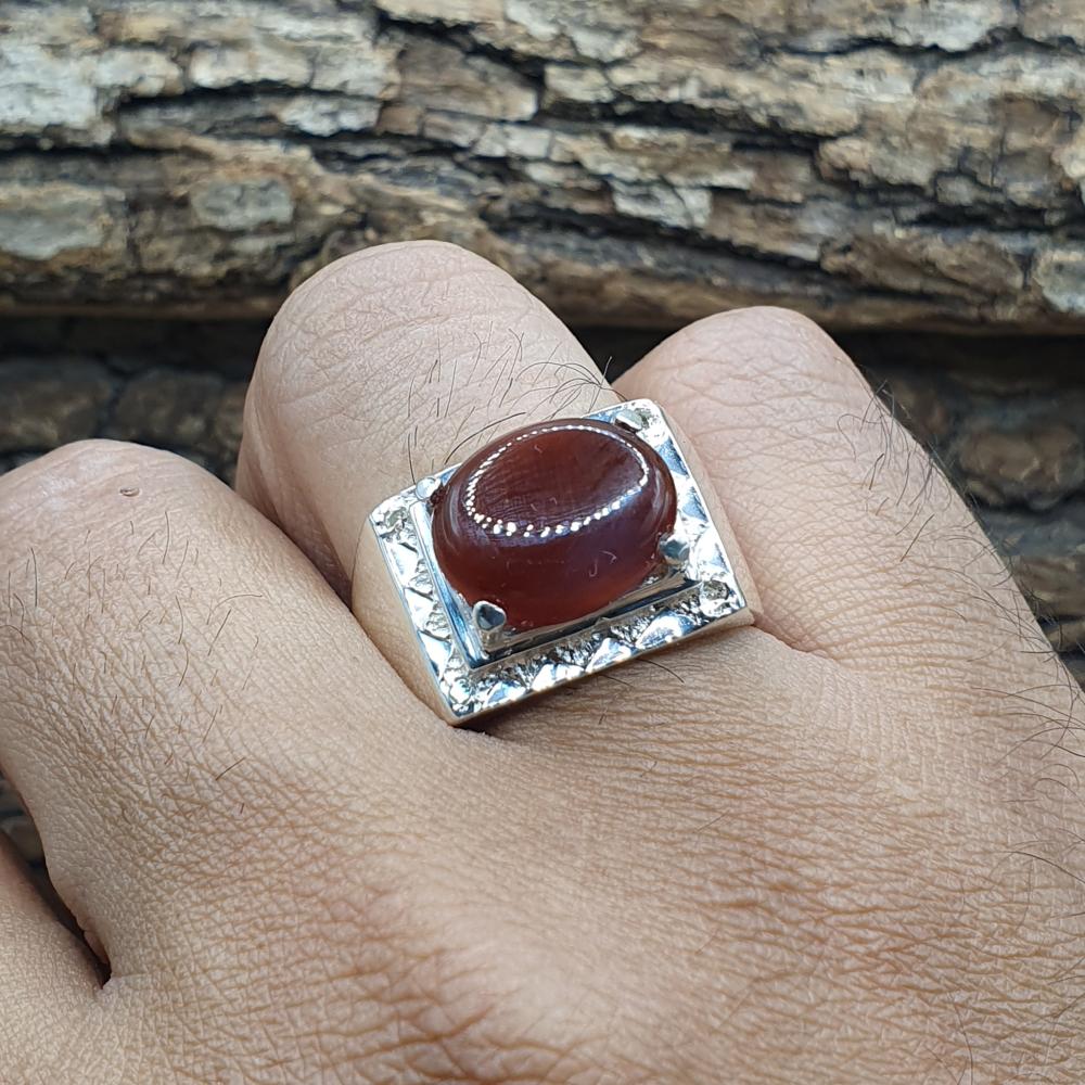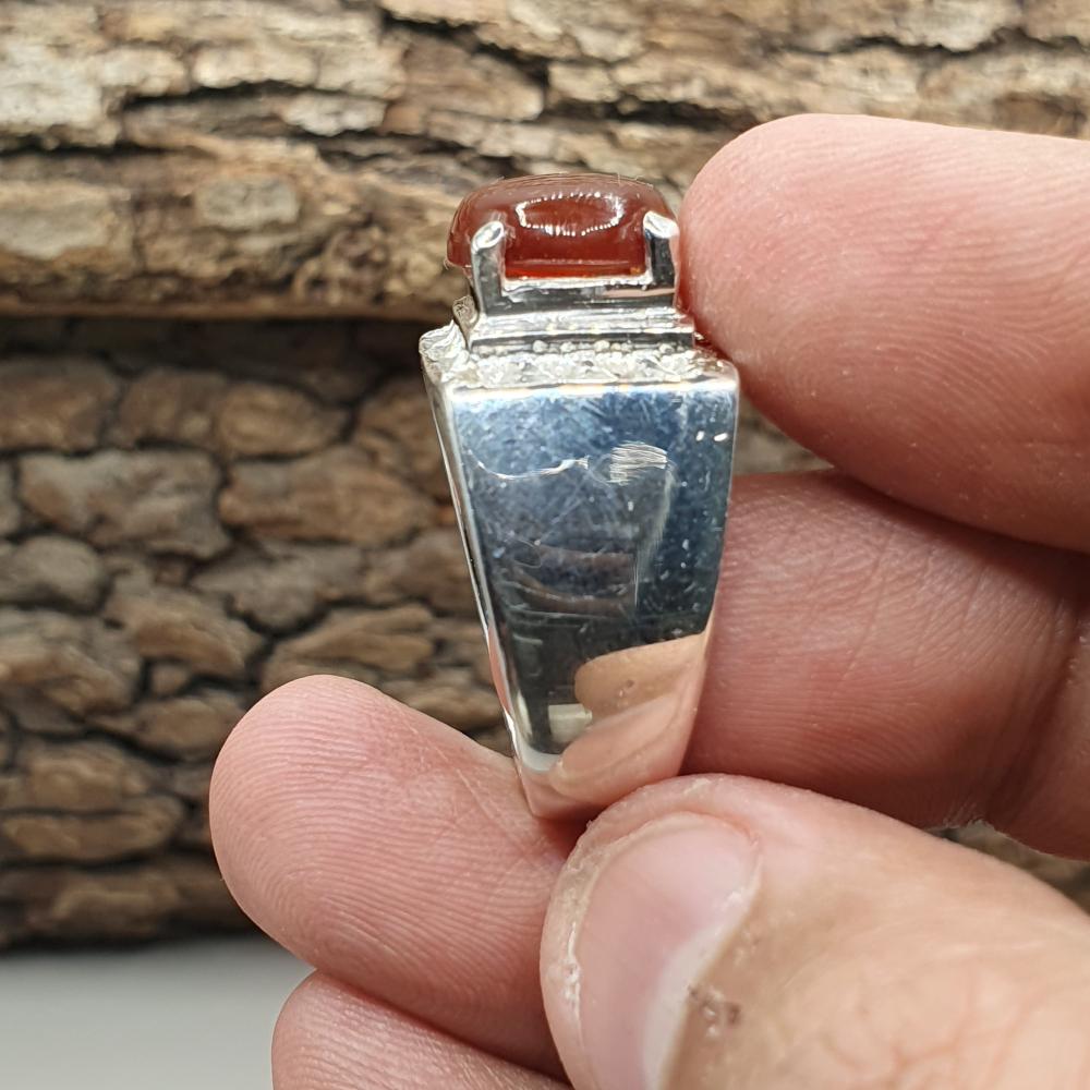 خاتم عقيق كبدي مرصع بالالماس عدد 4 حبات صيغه مرايه