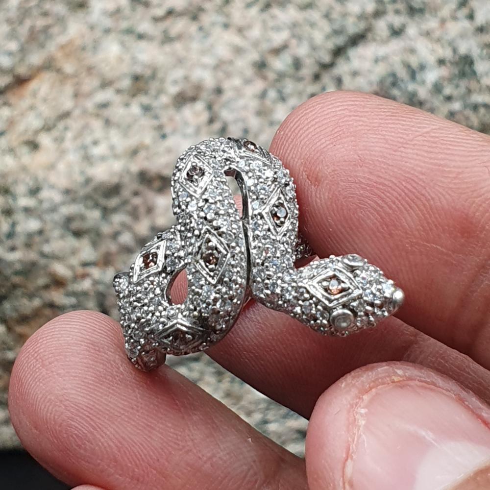خاتم نسائي زركون موديل الثعبان مطلي بالروديوم