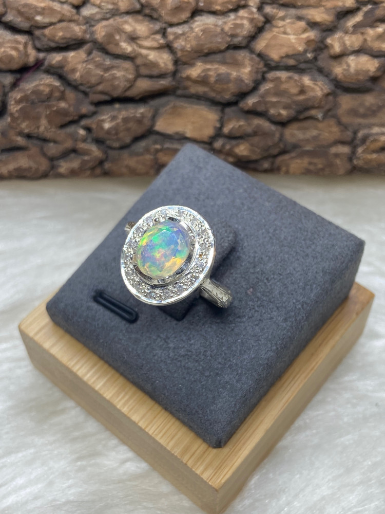 حجر اوبال حليبي نسائي مرصع بالالماس موديل ملكي
