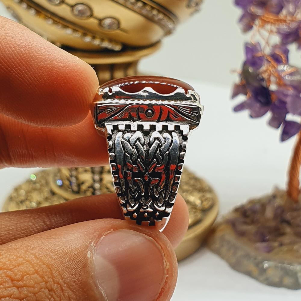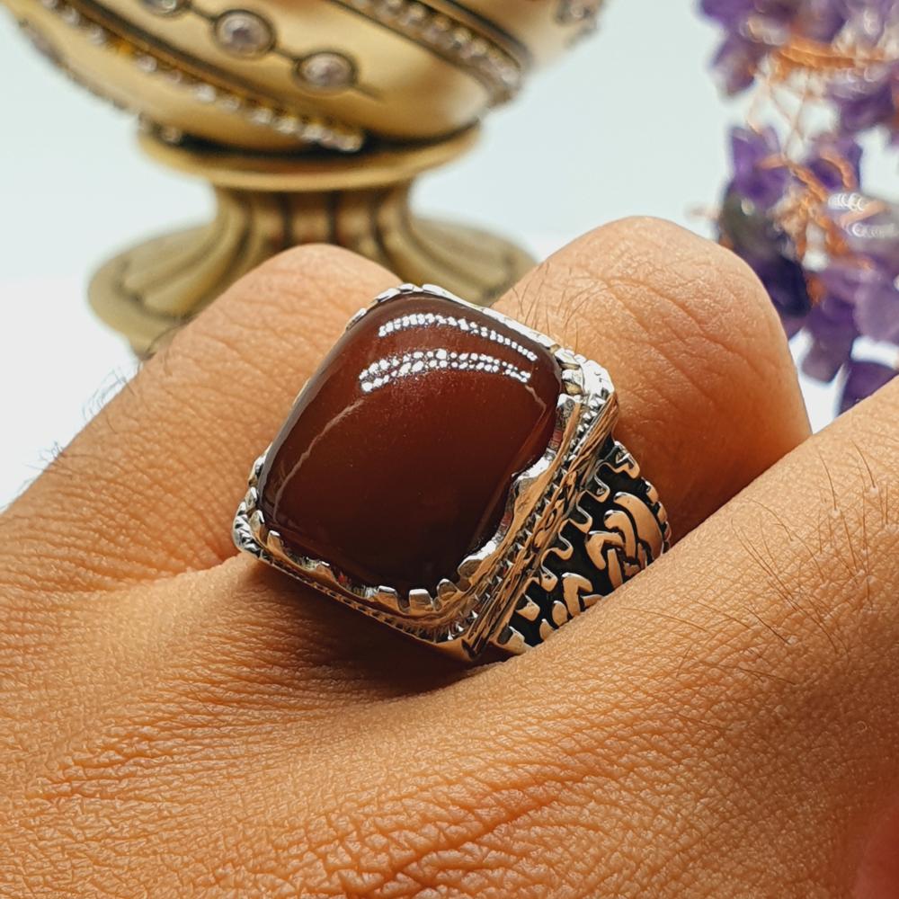 خاتم عقيق كبدي قص مربع برتاش الشريف