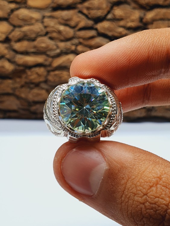 حجر الموزنايت بصياغه برتاش الشريف عيار الفضه 950 لون سماوي