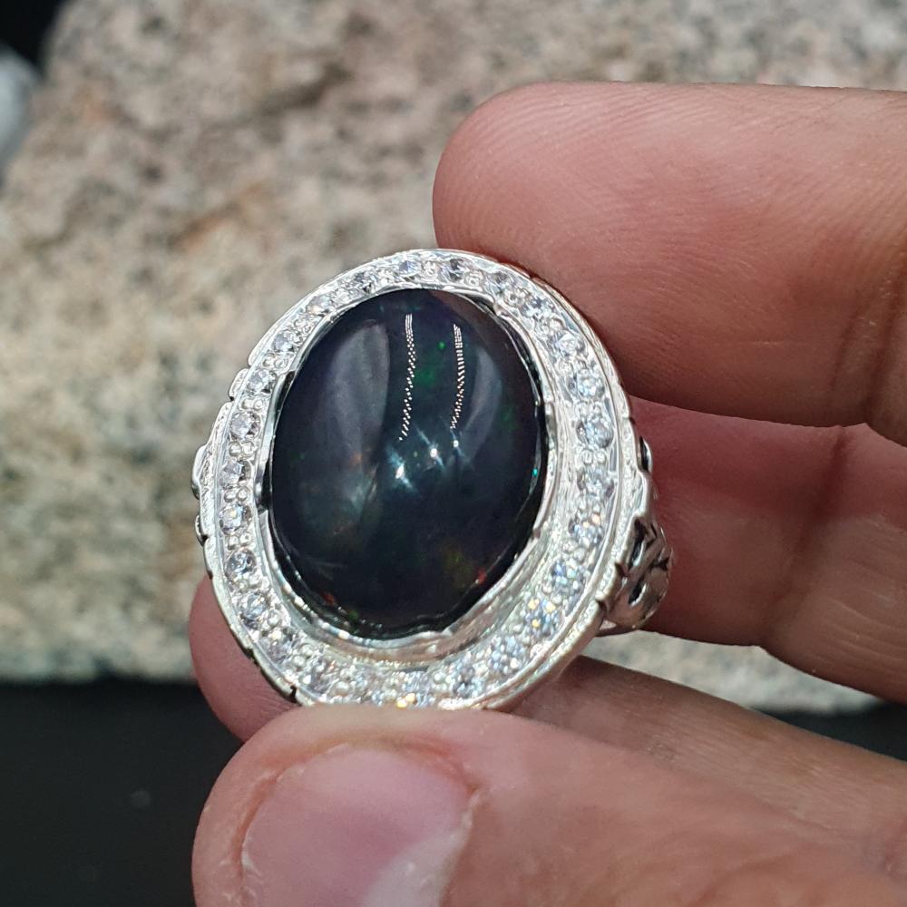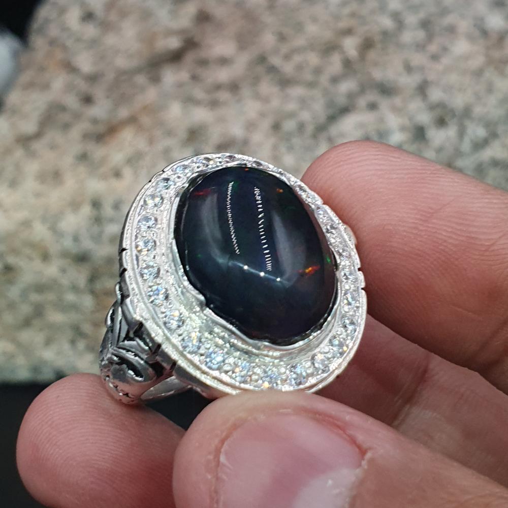 خاتم اوبال فل فاير موديل الكتف المبطن مرصع بالزركون السويسري