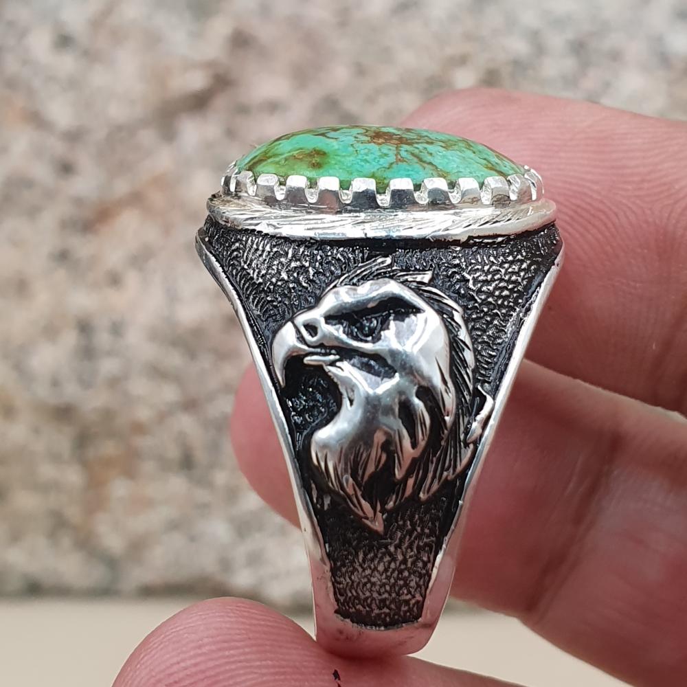 خاتم عقيق اخضر صياغه راس الصقر فضه عيار 950