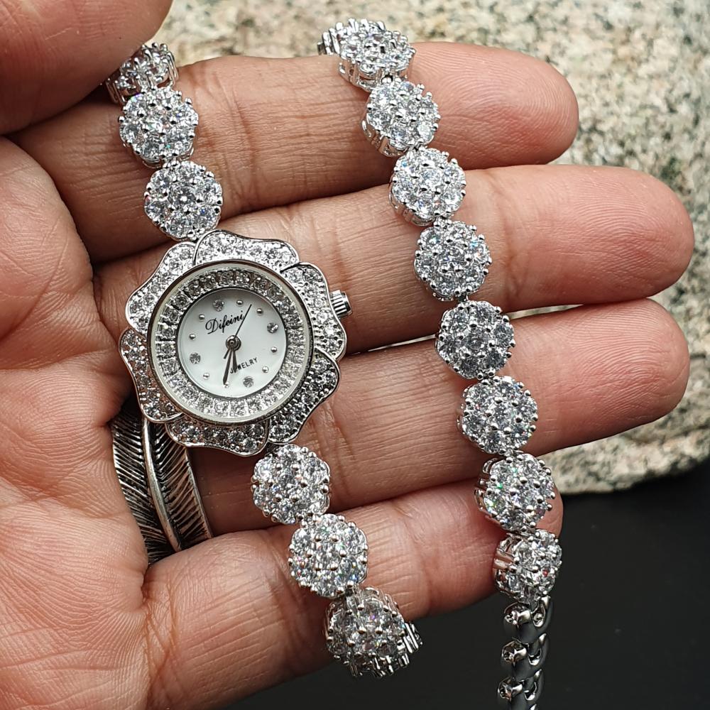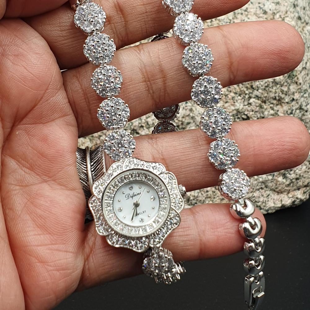 ساعه اسواره يد شكل ورده مرصعه بالزركون السويسري لون فضي