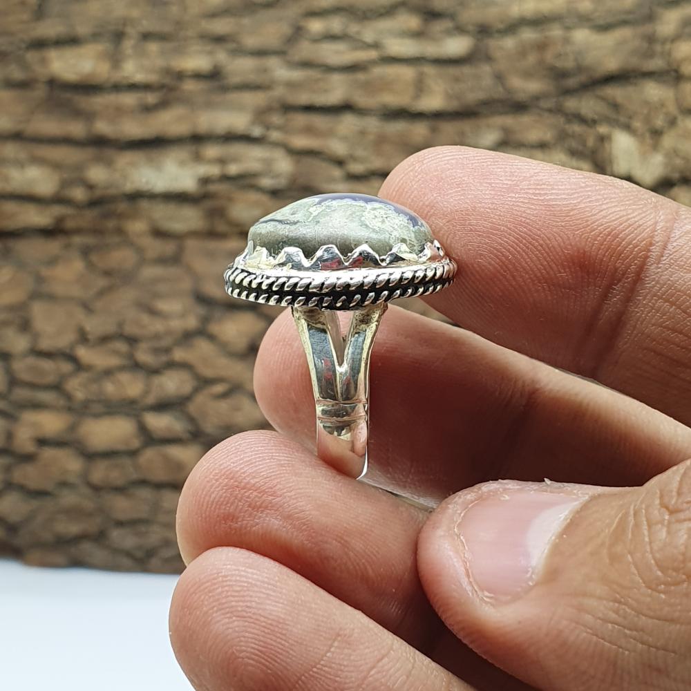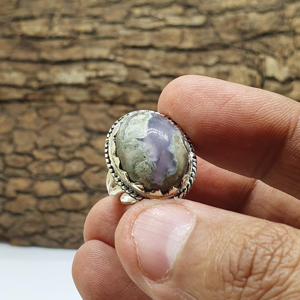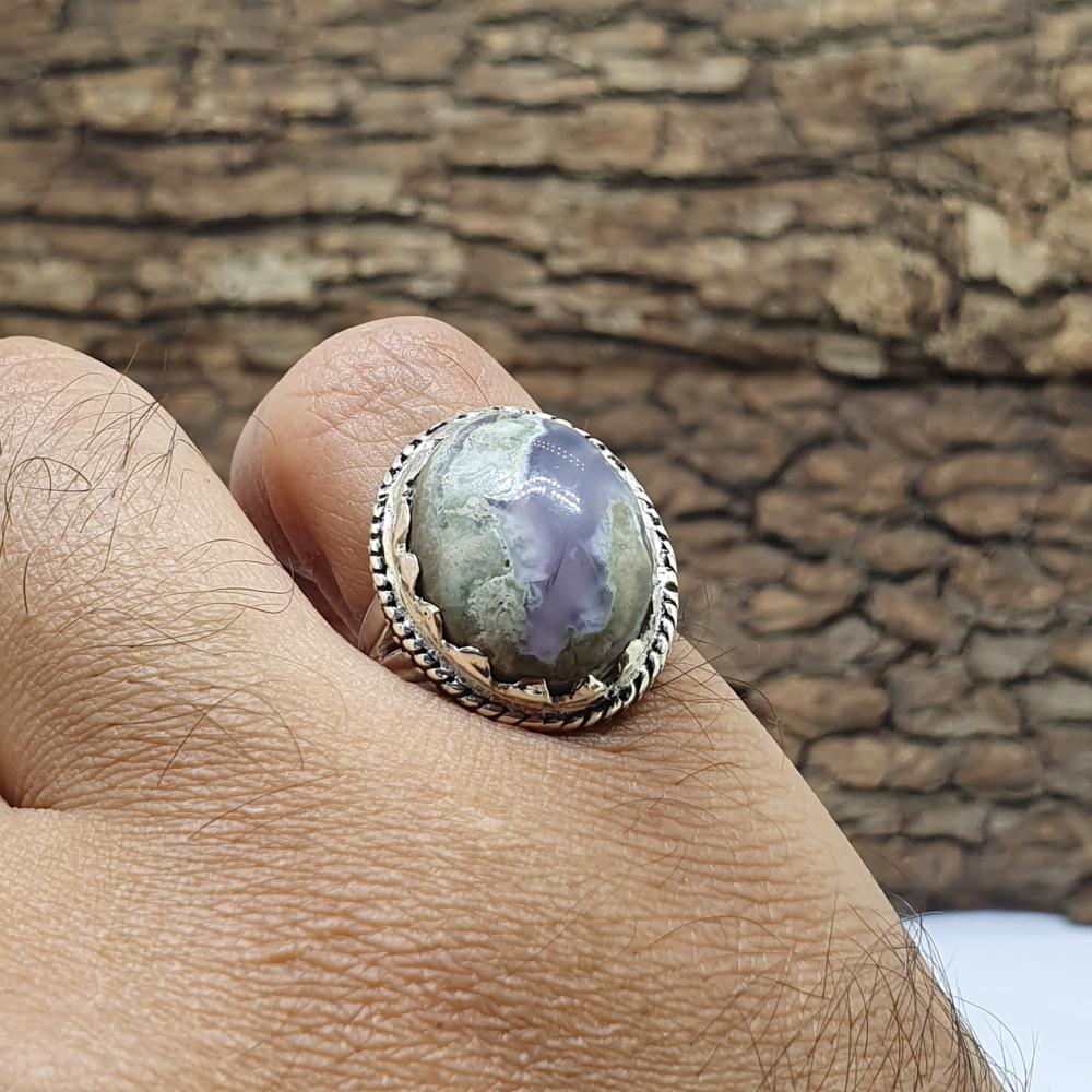 خاتم عقيق خرائطي بنفسجي موديل ملكي سلك نجراني