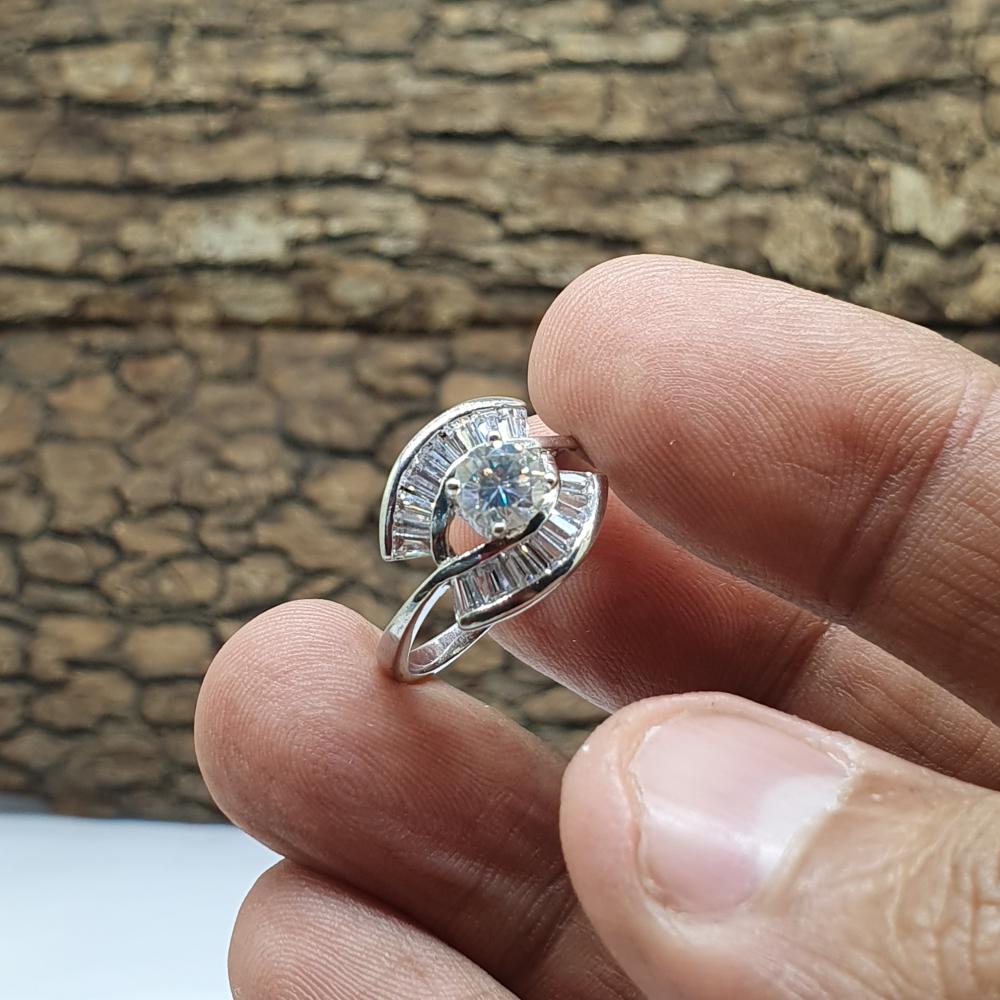 خاتم موزنايت مع فصوص باكيت موديل الماس