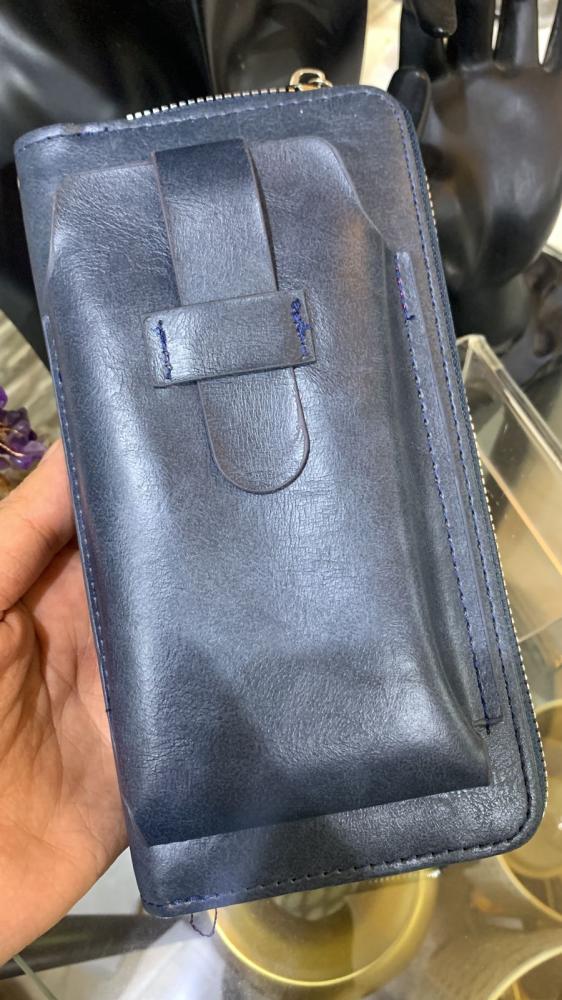 محفظة جلد لون كحلي جودة عالية بها حقيبة جوال جيب جلد فاخر من الاخر