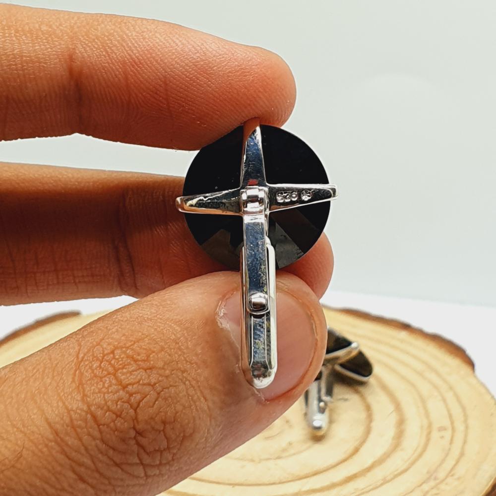 كبك فضه حجر زركون اسود عيار ٩٢٥