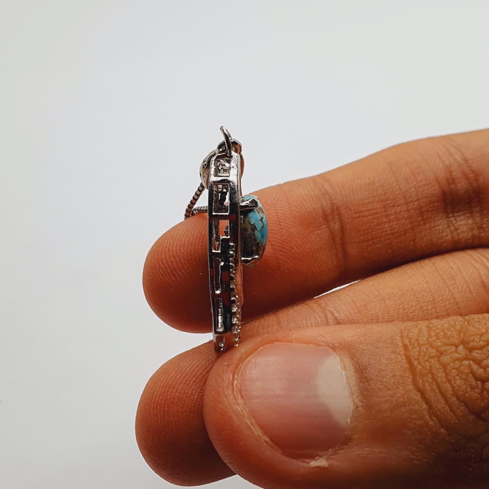 تعليقه حجر الفيروز الطبيعي مرصع بالزركون السويسري مع سلسة فضة عيار 925 تصميم انيق