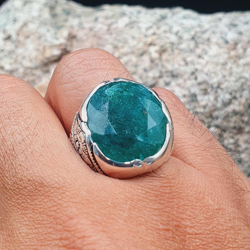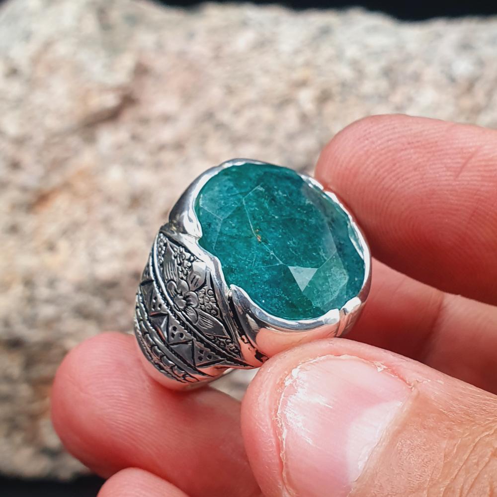 خاتم زمرد هندي صياغه قلم زني الشريف