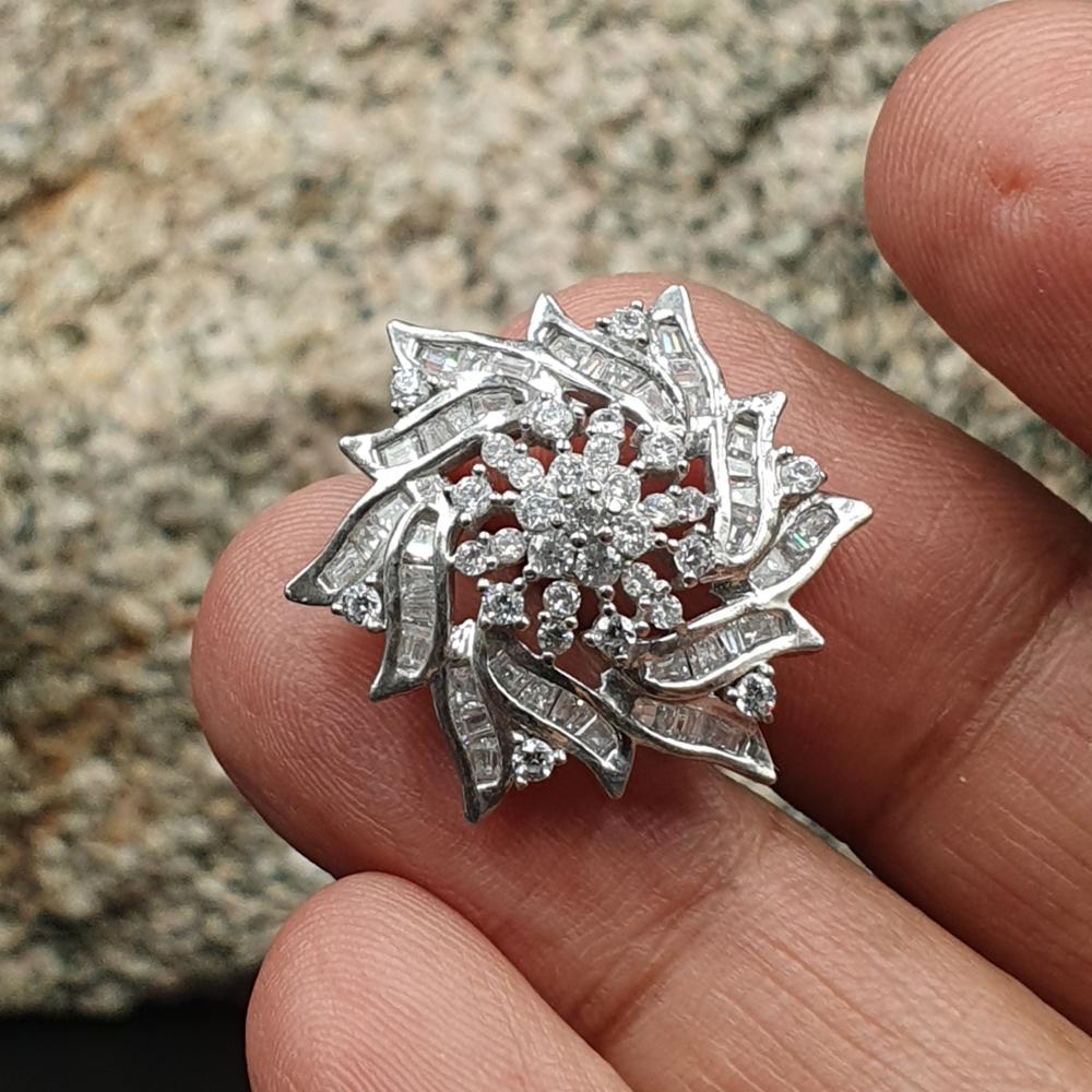 خاتم نسائي زركون مطلي بالروديوم موديل الورده الجوري
