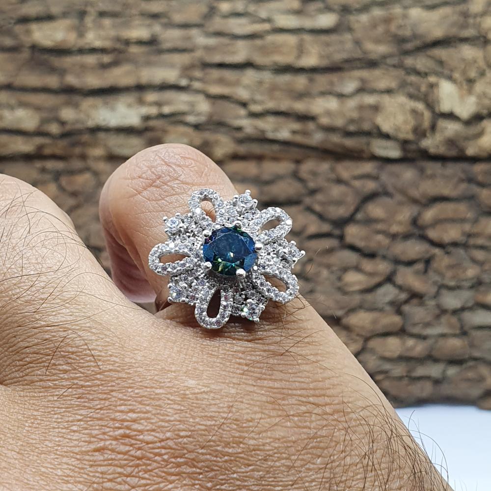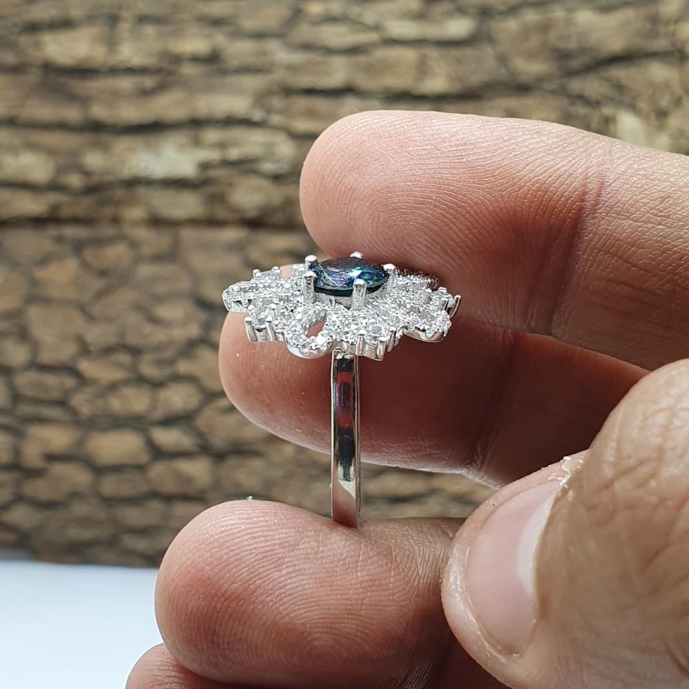 خاتم موزنايت مع فصوص زركون موديل الورده