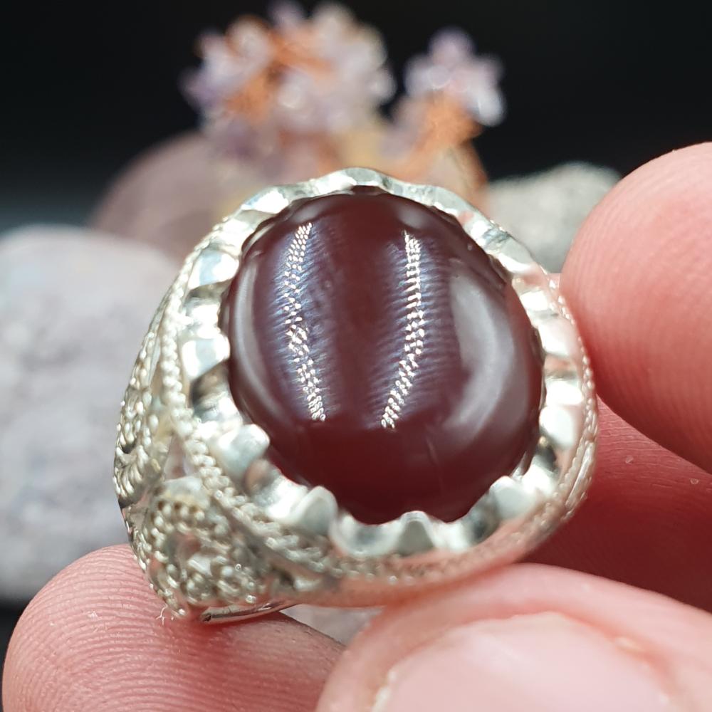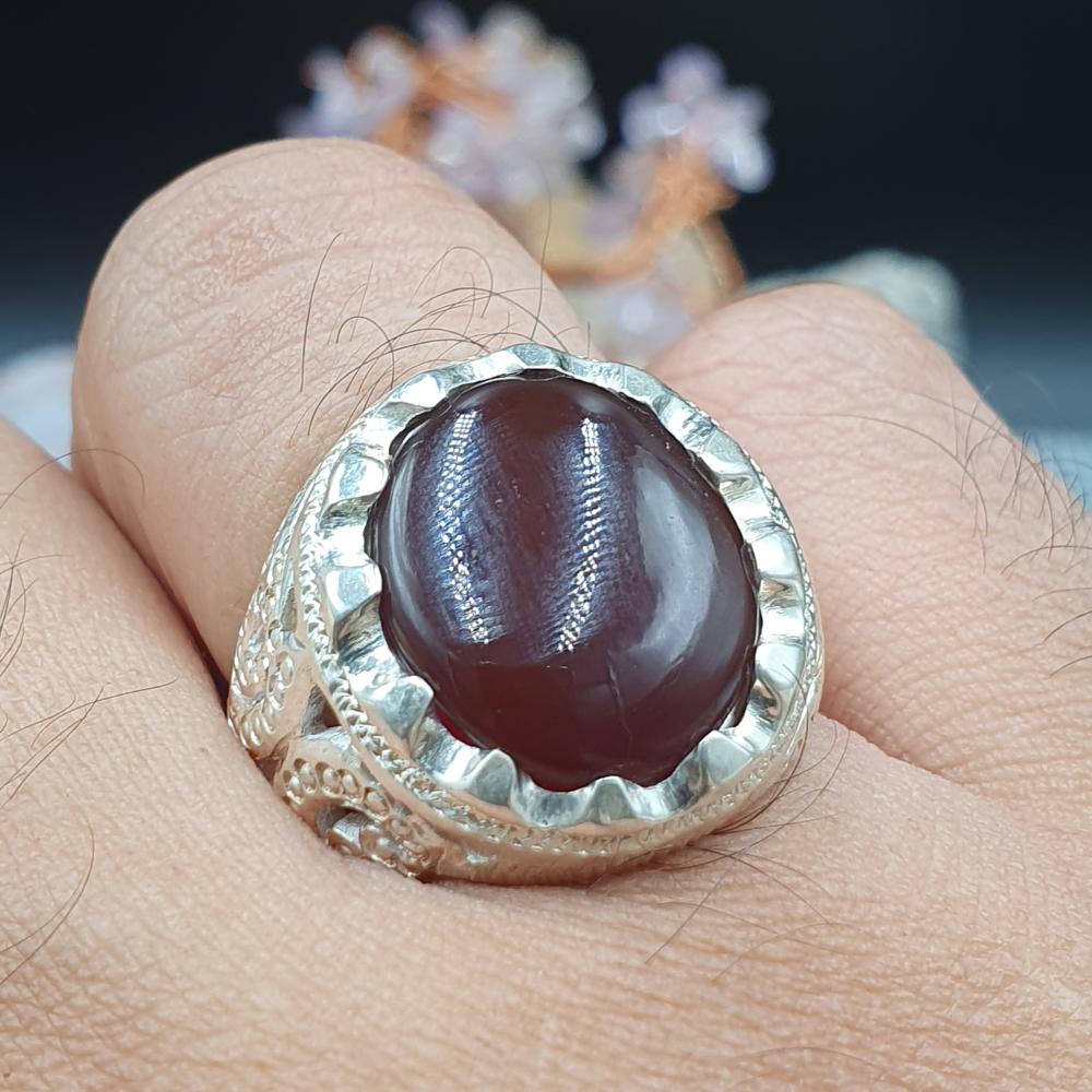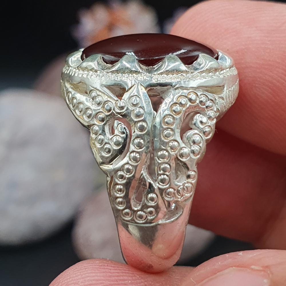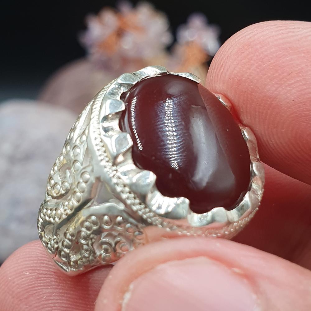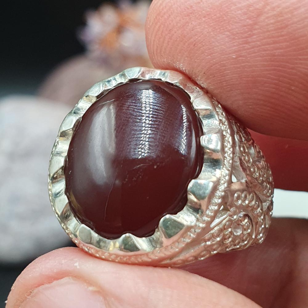 خاتم عقيق كبدي بيضاوي موديل دق مسماري