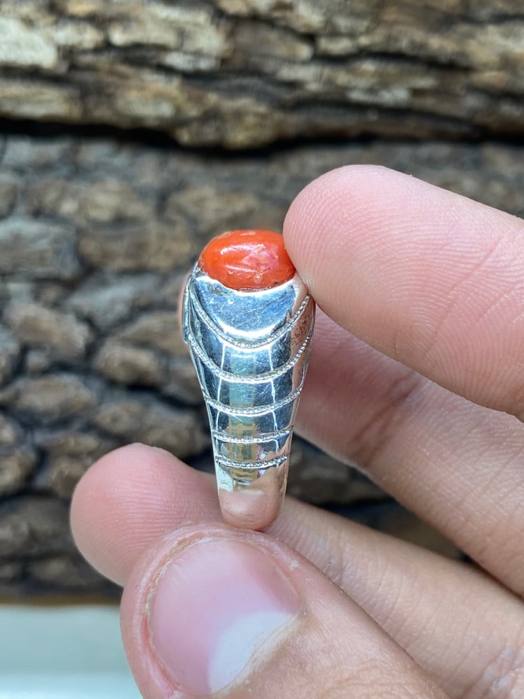 حجر مرجان تونسي اصلي صياغة ملكية فضة عيار 925 صياغة الشريف