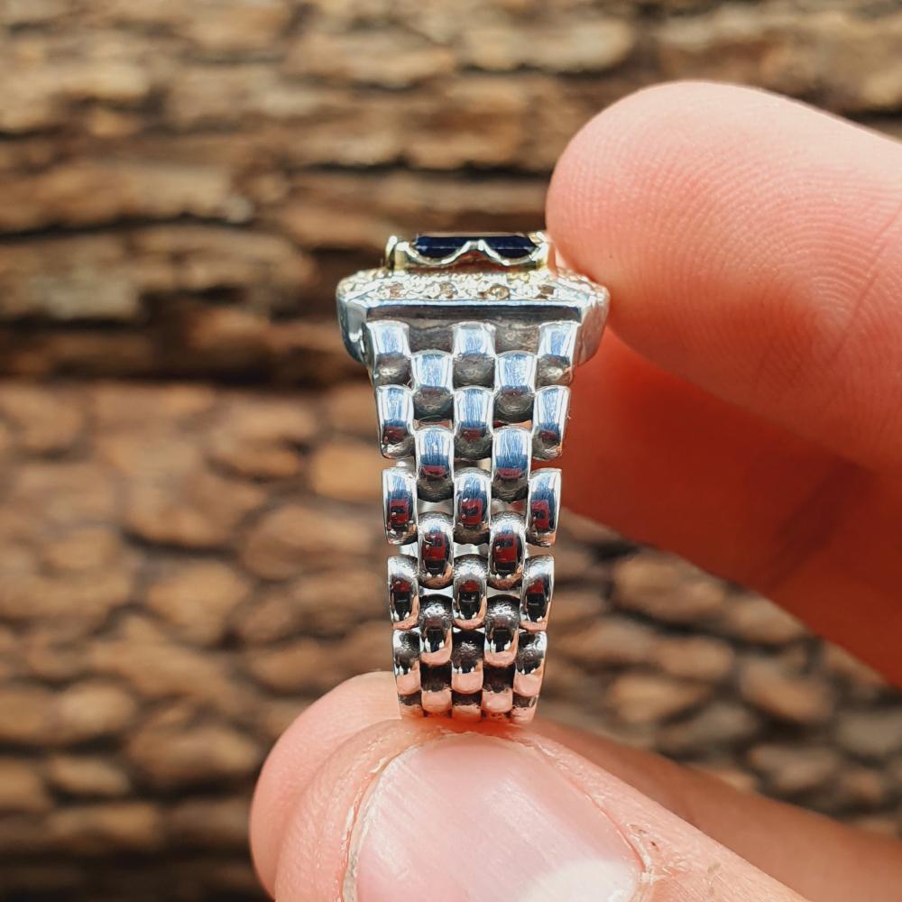 الحجر: الزفير الافريقيوزن الحجر: 1.15عدد الألماس: 14عيار الفضة: 925مقاس الخاتم 10 امريكي - 20.5 عربي وقابل للتعديل