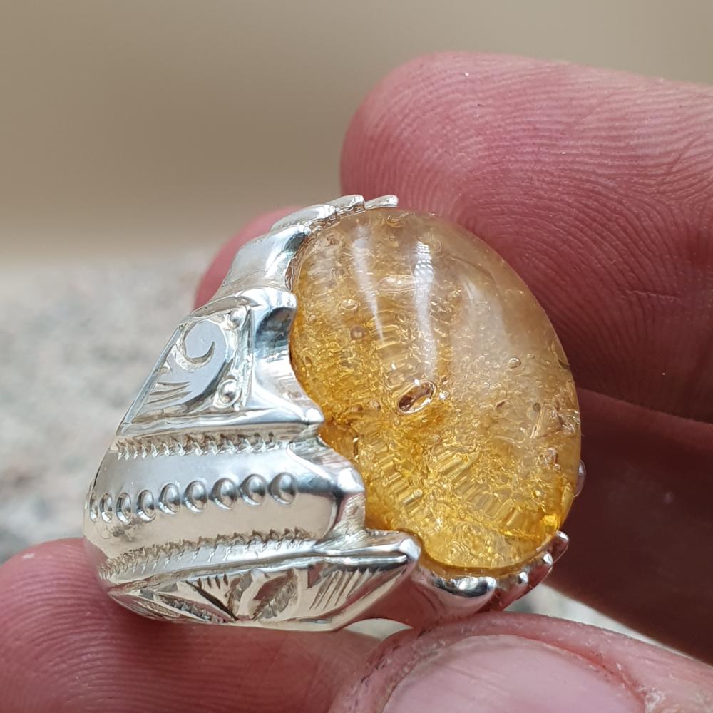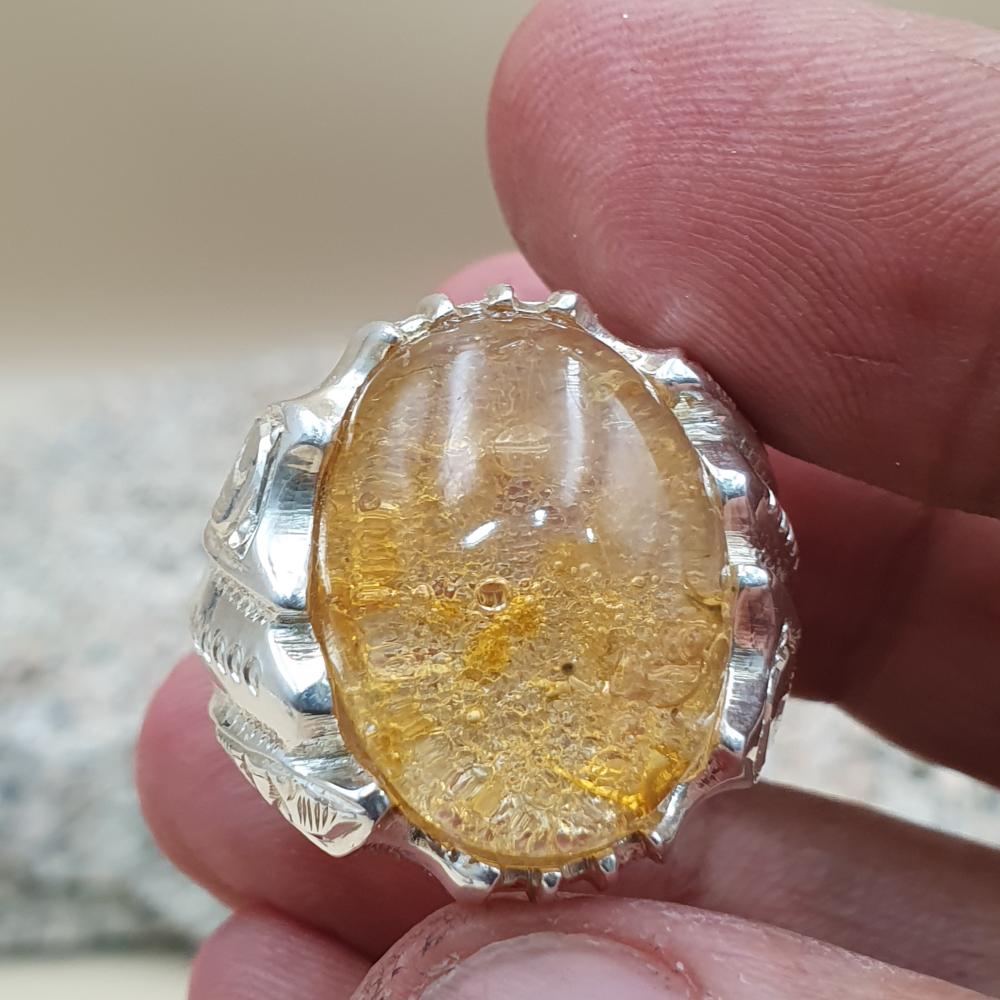 خاتم كهرمان بولندي بصياغه برتاش الشريف عيار 980