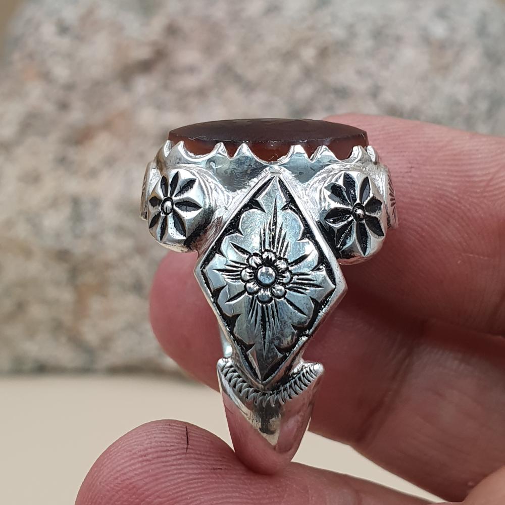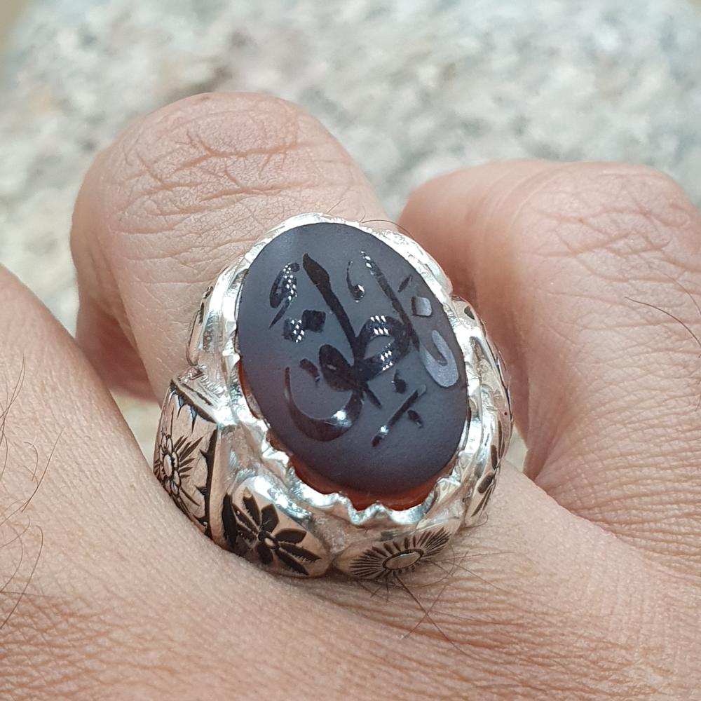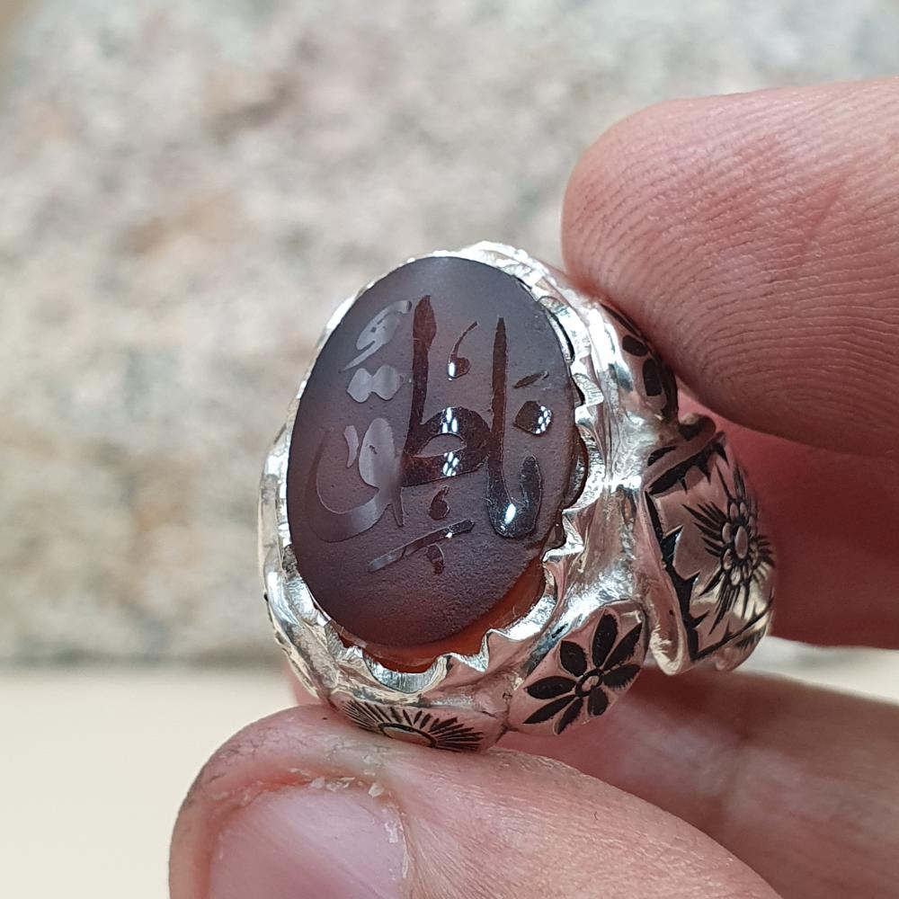 خاتم عقيق يماني منقوش (ناطق ) مع صياغه برتاش الشريف
