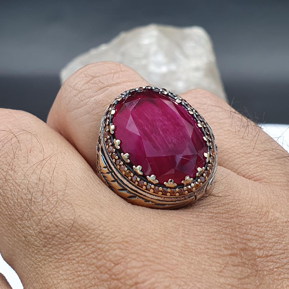 خاتم ياقوت بانكوك مرصع بالزركون موديل اسطنبولي