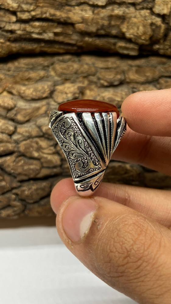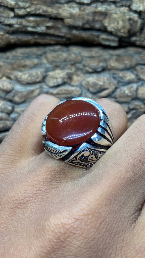 خاتم عقيق يمني كرزي بصياغة لوكس الشريف