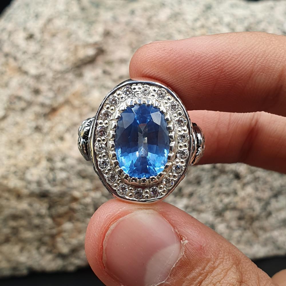 خاتم توباز لندني مرصع بالزركون موديل حمامه السلام