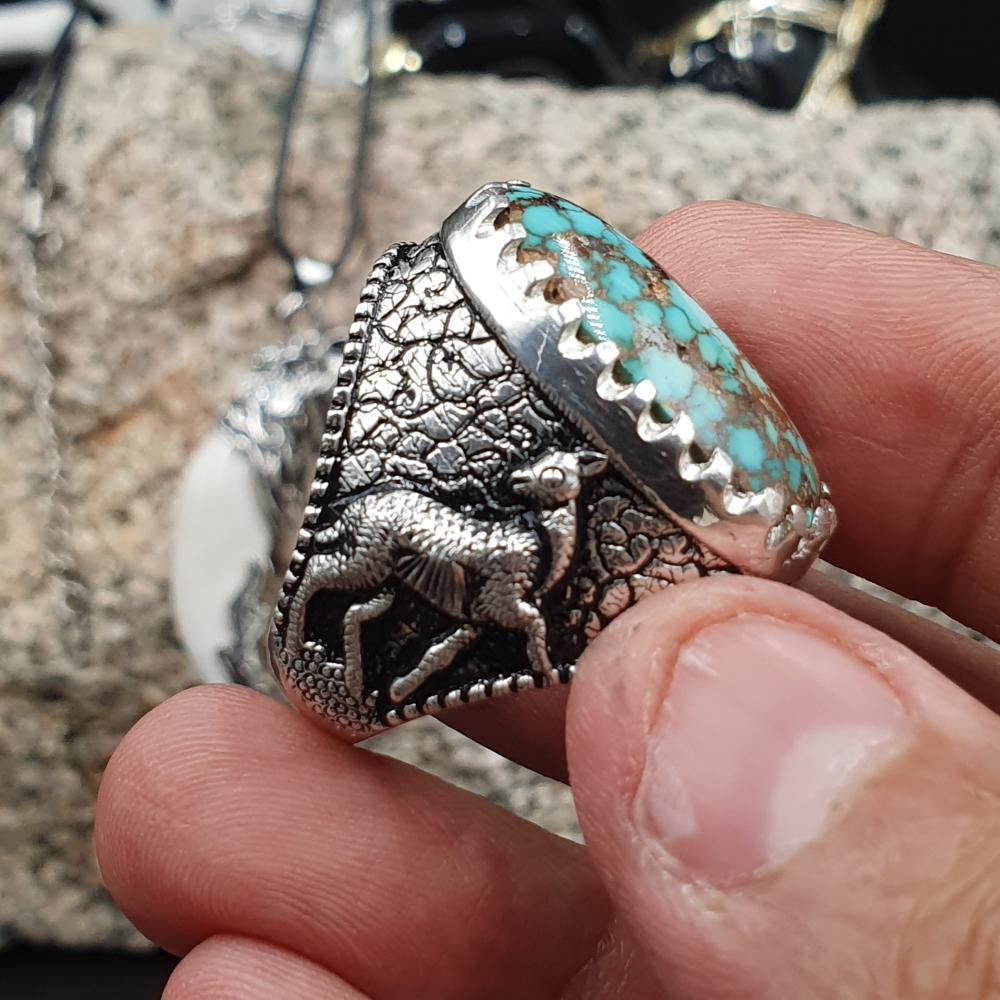 خاتم فيروز عنكبوتي بصياغه الوعل ابداع الشريف