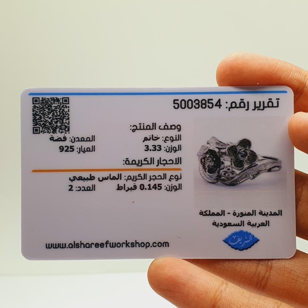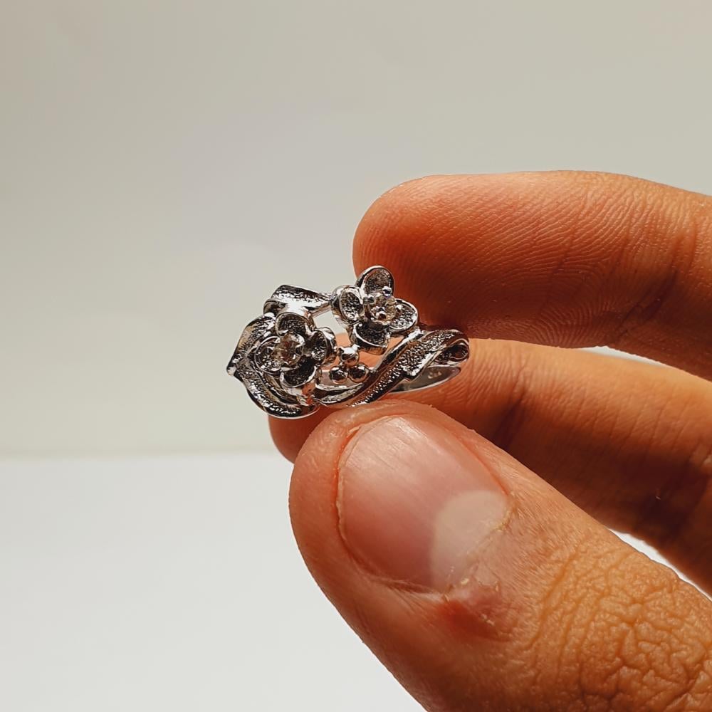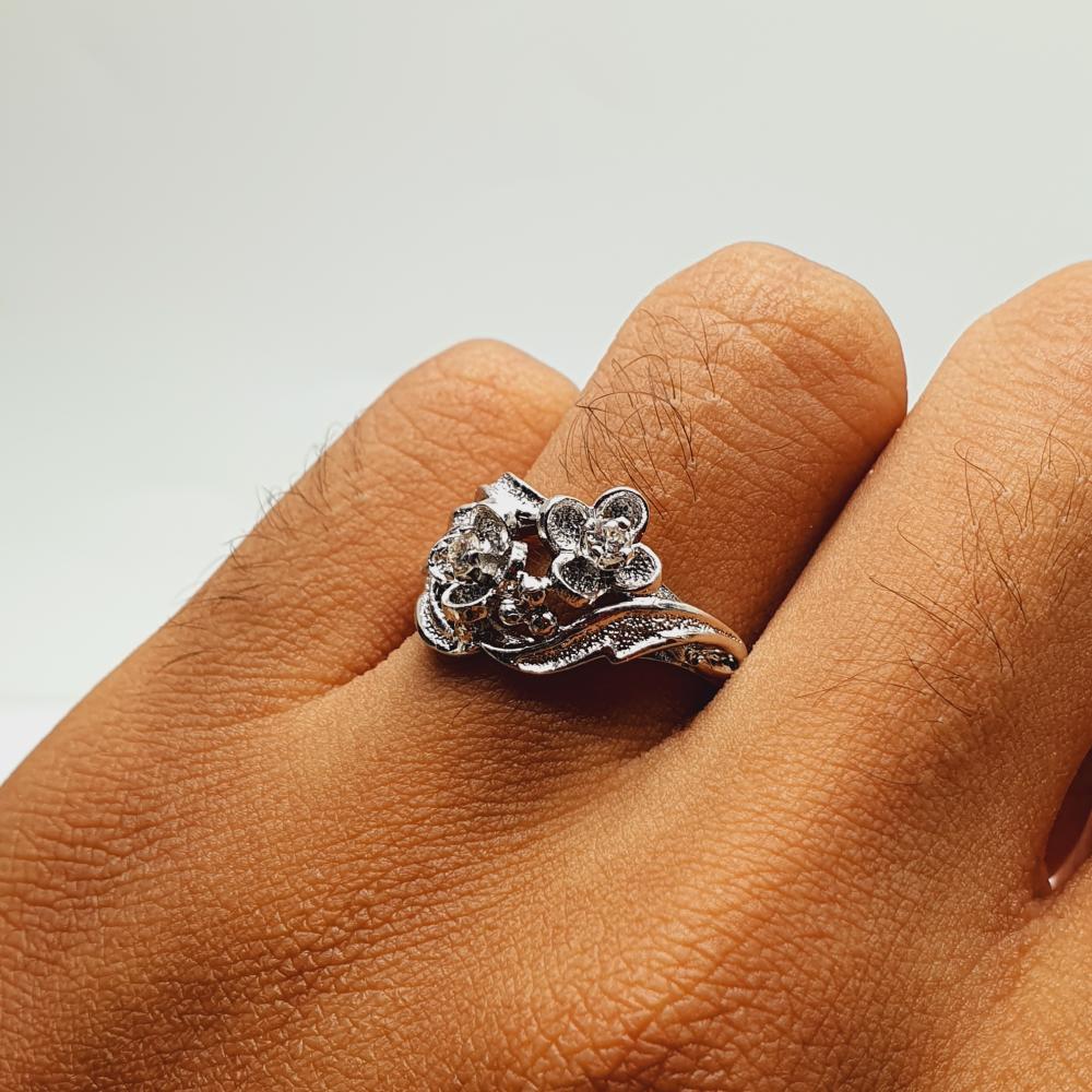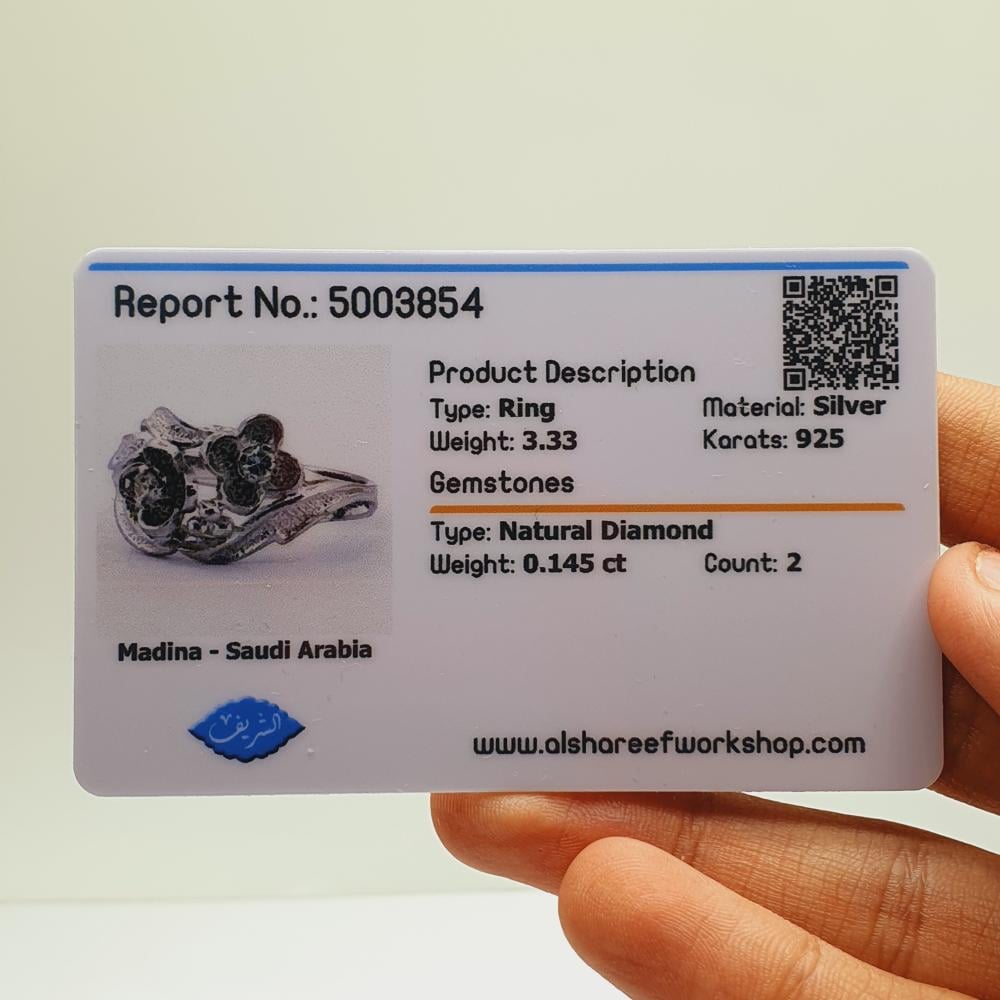 خاتم الماس طبيعي موديل الورده الجوري فضه 925 مطلي بالروديوم