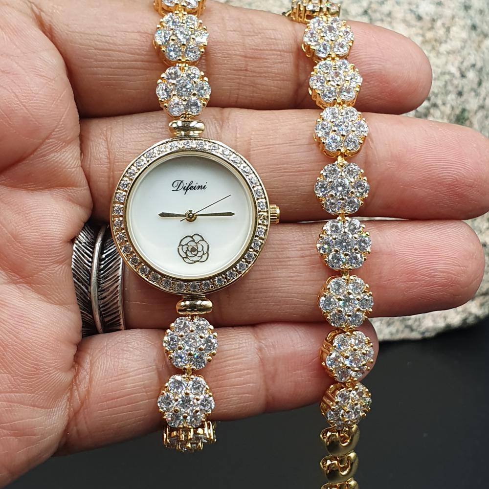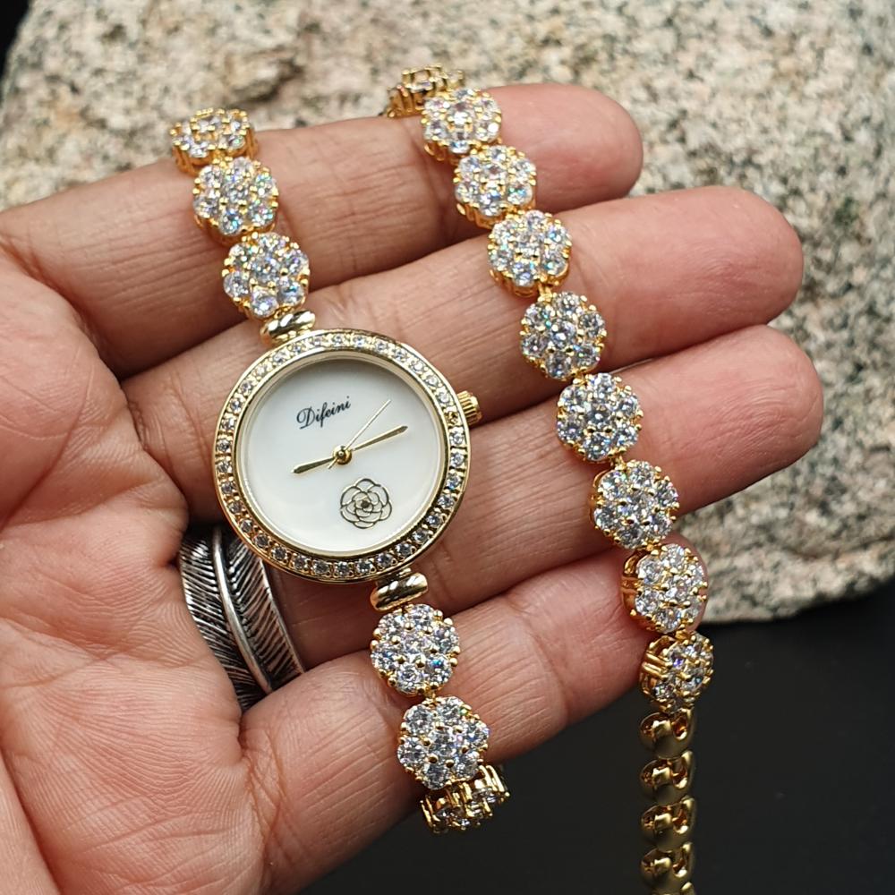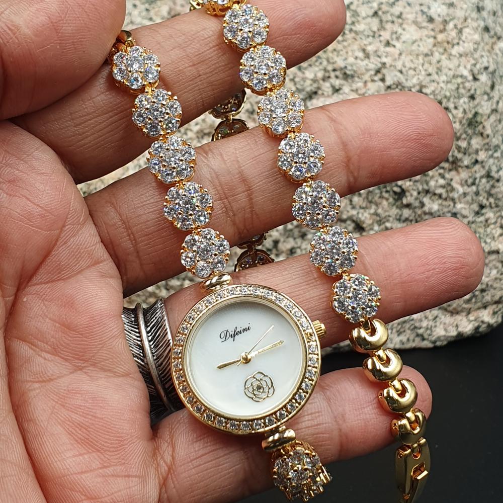 ساعه اسواره يد شكل داىري مرصعه بالزركون السويسري المدهب