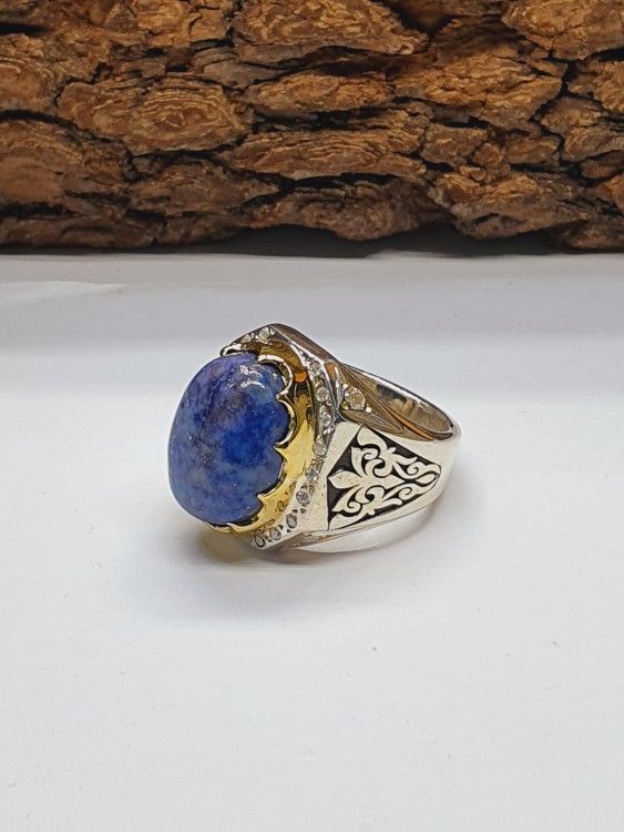 حجر الازورد الافريقي المرصع بالموزنايت برواز ذهبي