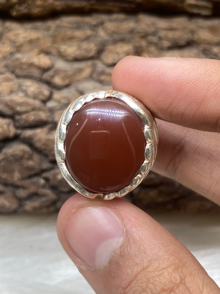 حجر عقيق يماني كبدي صياغه منشار وقلم زني