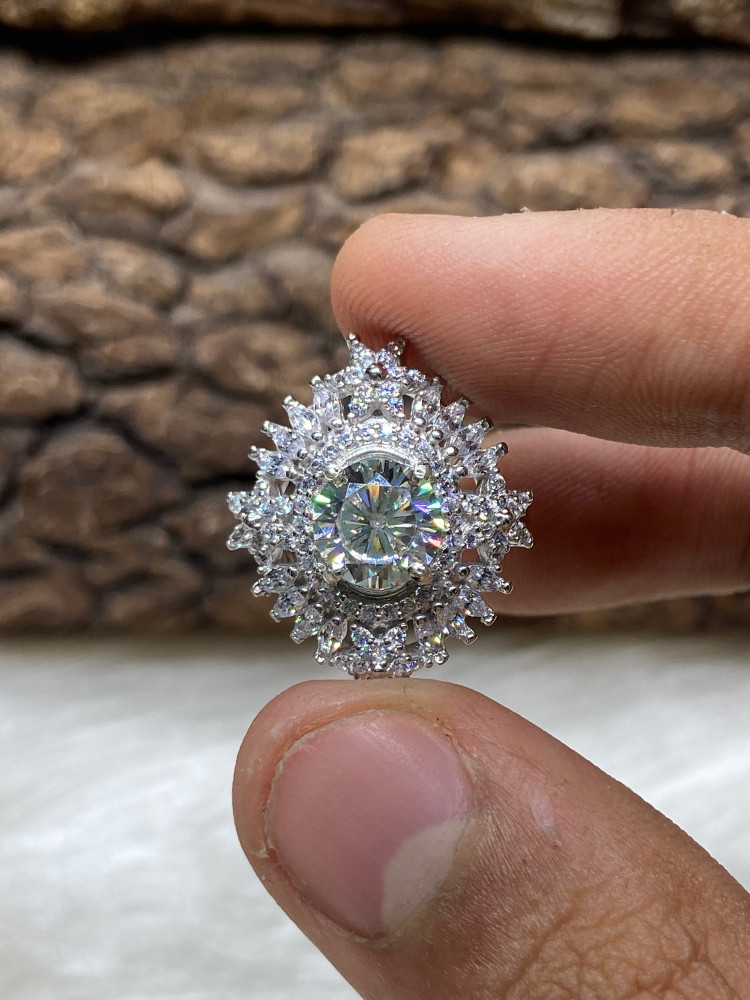 حجر الموزنايت النسائي مرصع بالزركون تصميم انيق