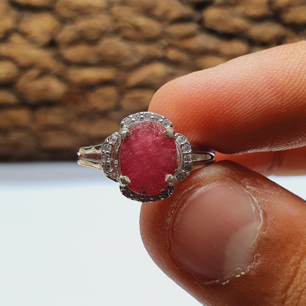 خاتم ياقوت أفريقي ناعم مرصع بالزركون