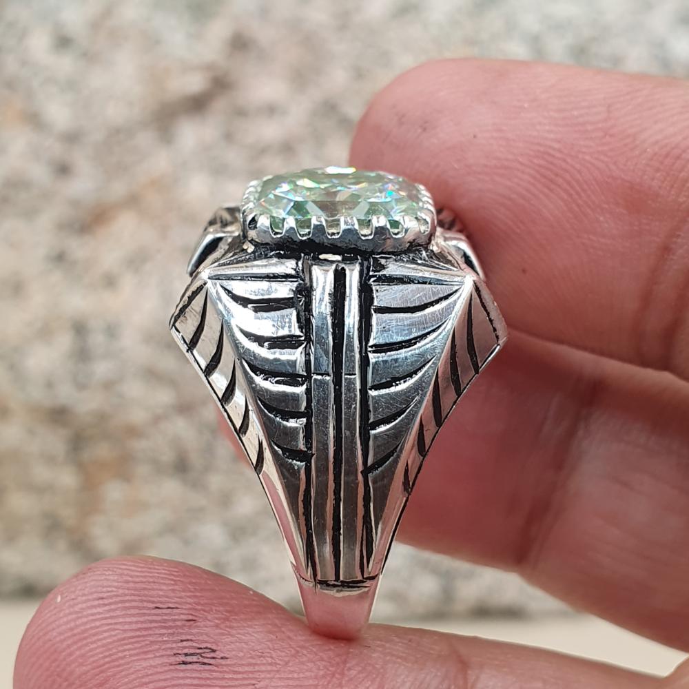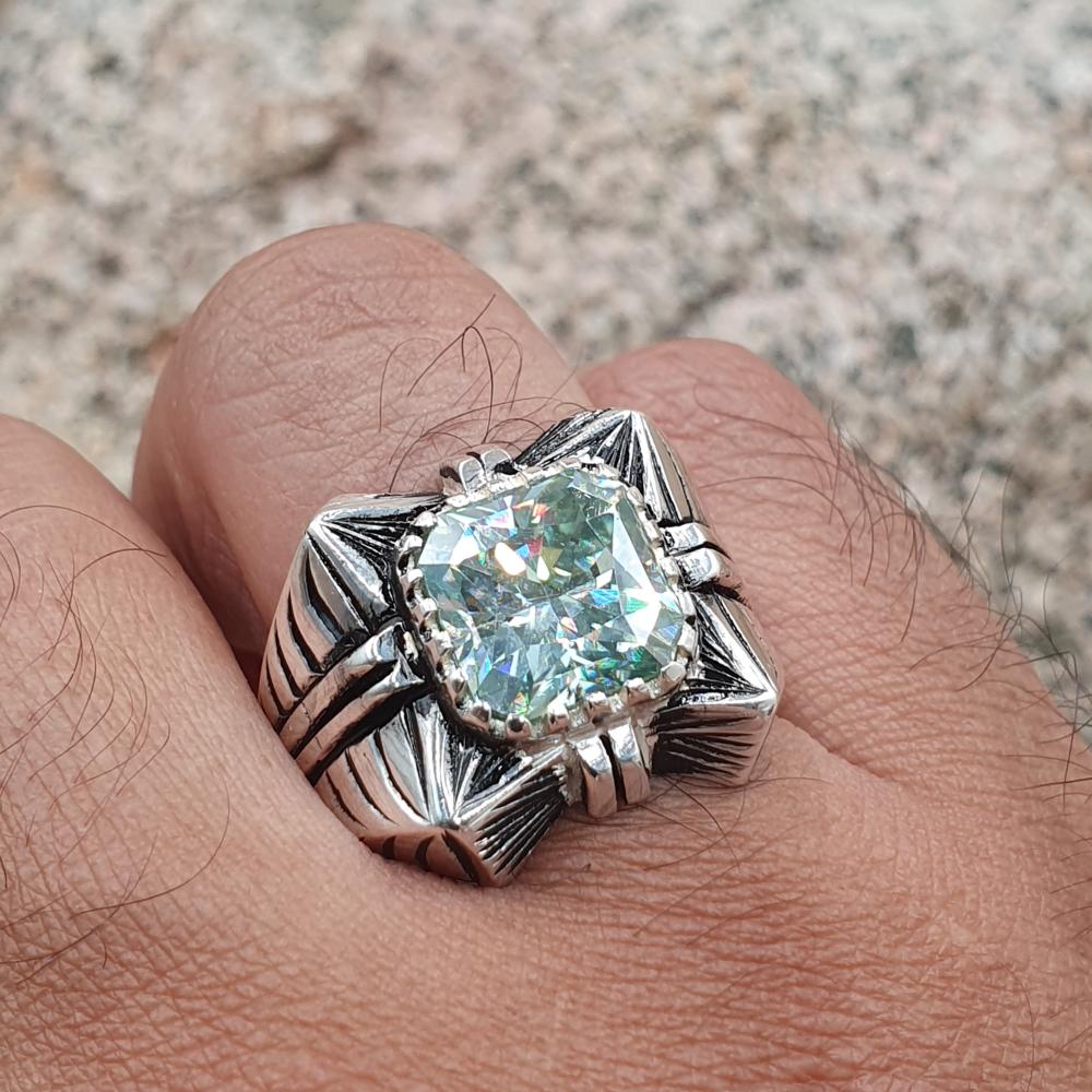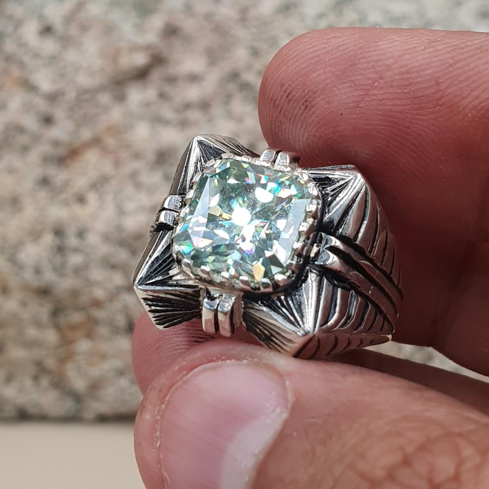 خاتم موزنايت سماوي مربع صياغه لكس الشريف