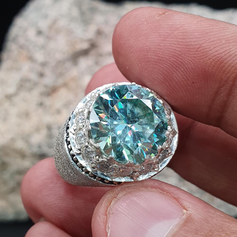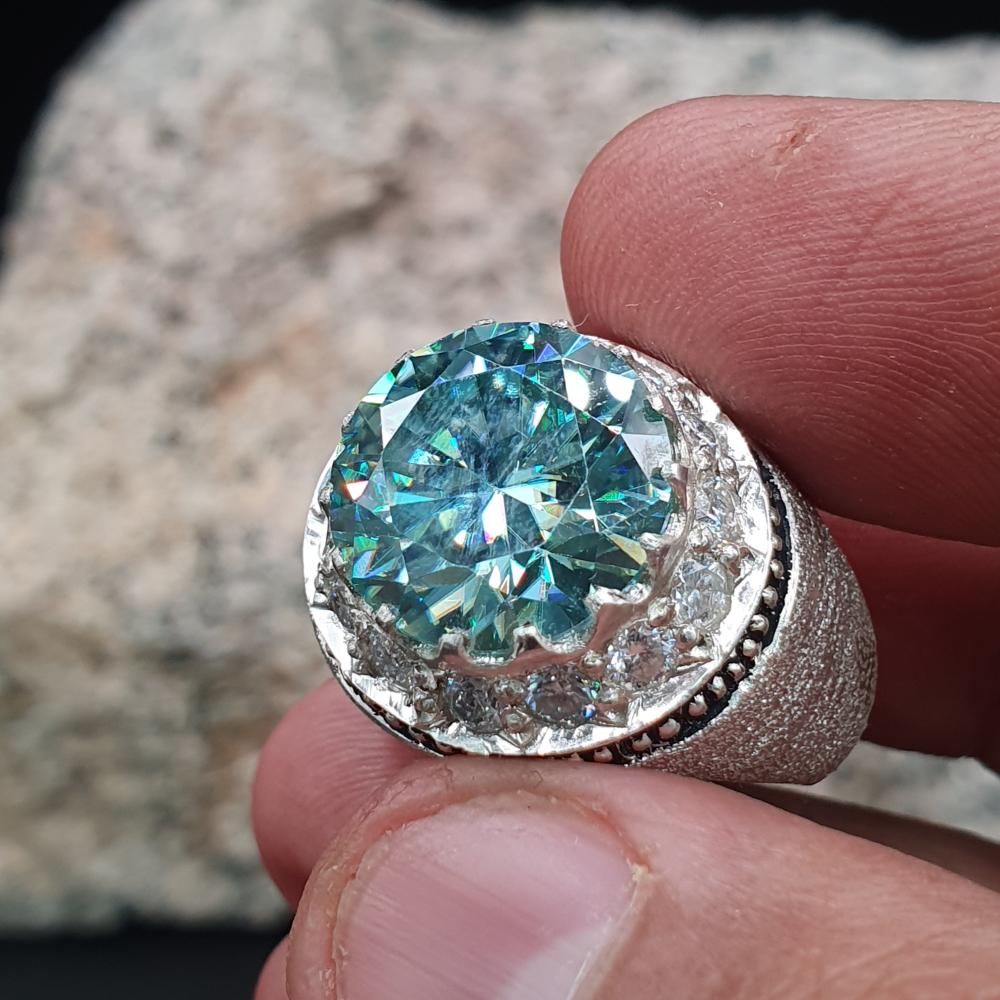 خاتم موزنايت دائري مرصع بالموزنايت موديل فتافيت سكر