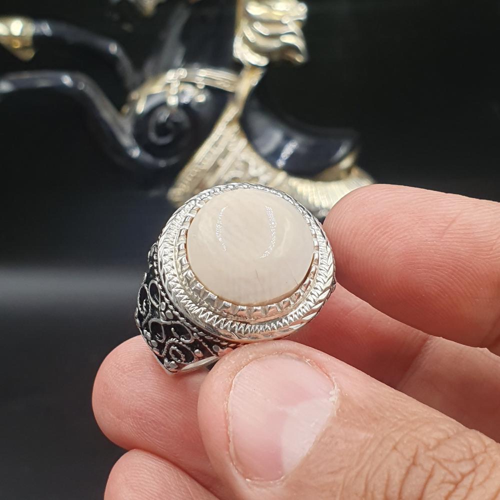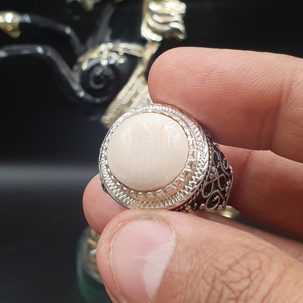 خاتم عاج الفيل الطبيعي الدائري صياغه سلك نجراني