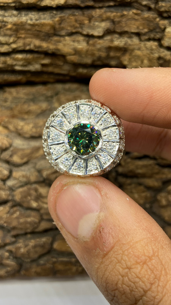 حجر الموزنايت المرصع بالزركون صياغه الشريف